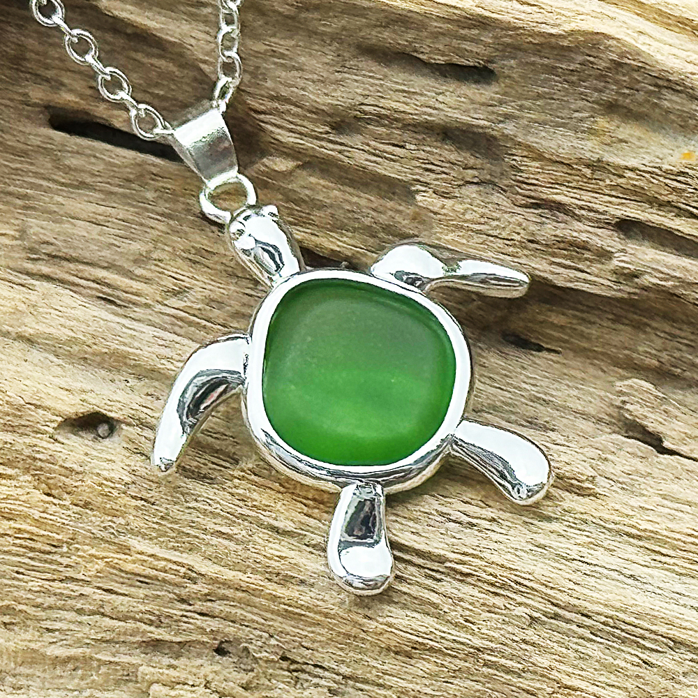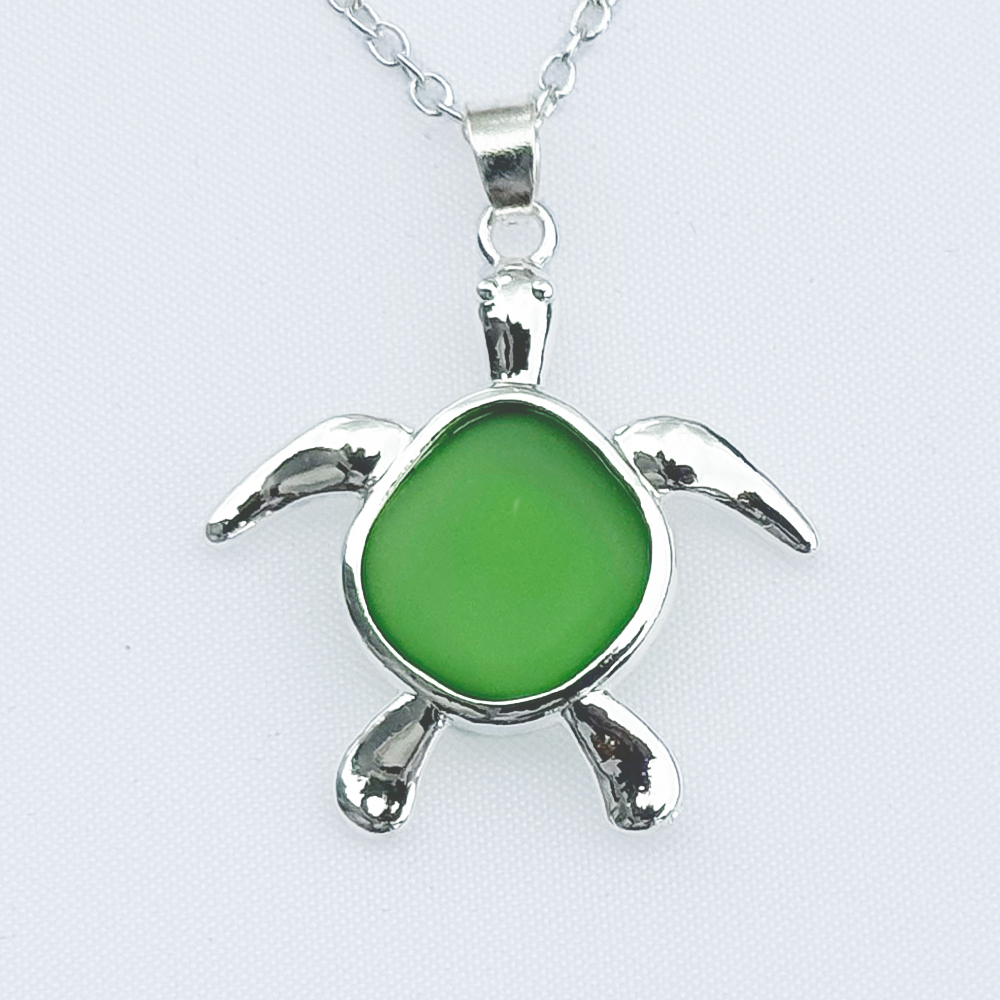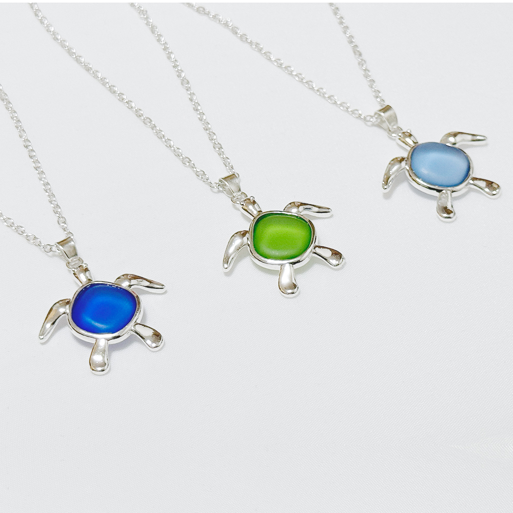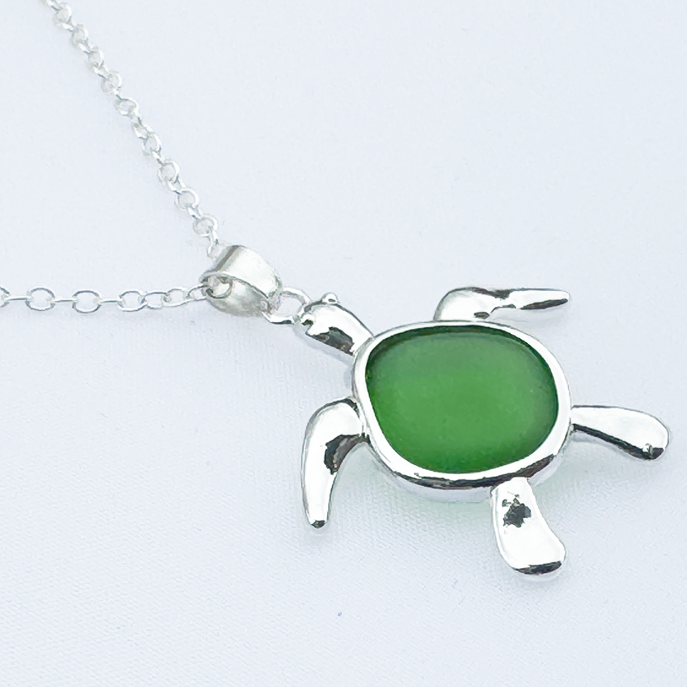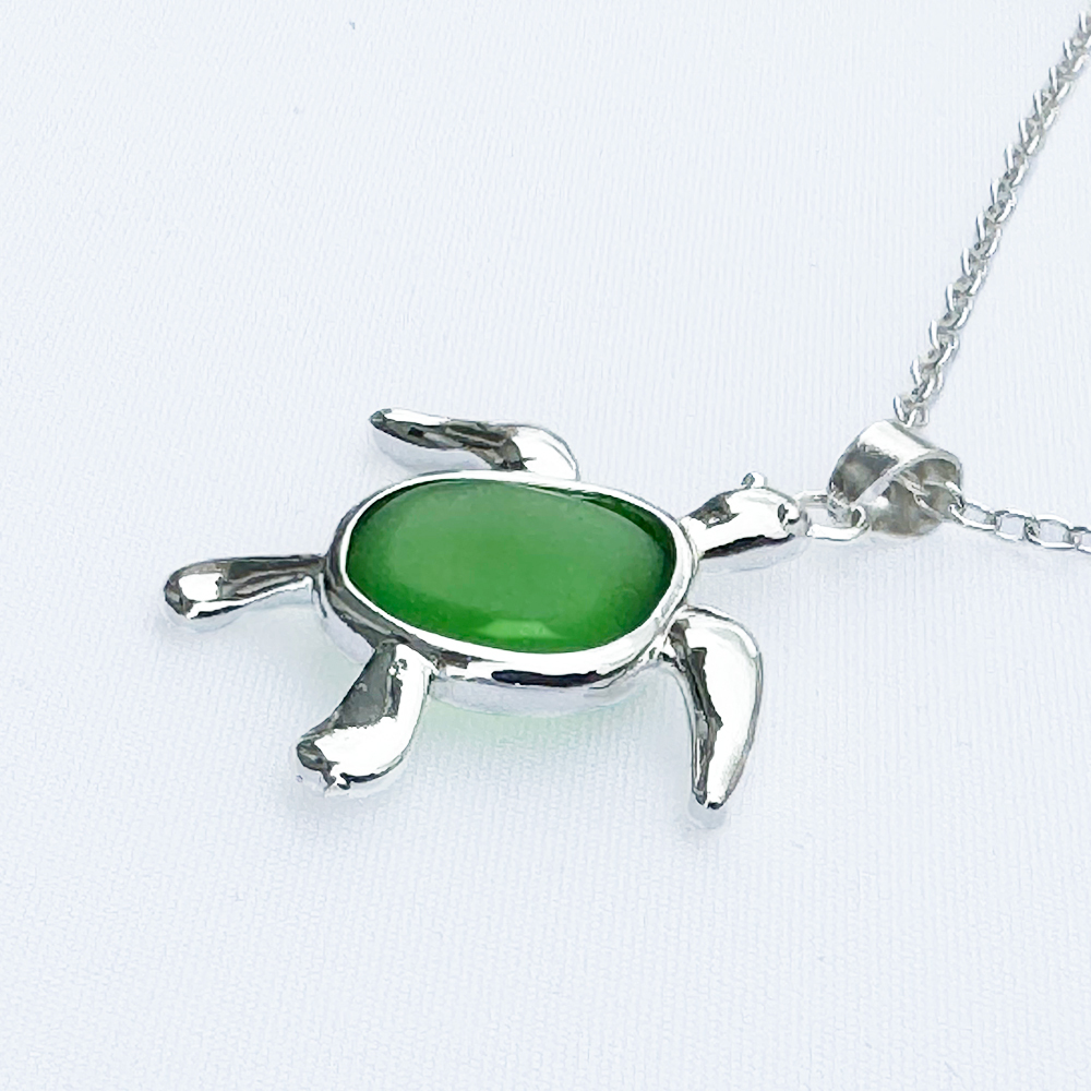 海の守り神 ホヌ ハワイアンネックレス 海亀モチーフ シーグラス レディース【グリーン】