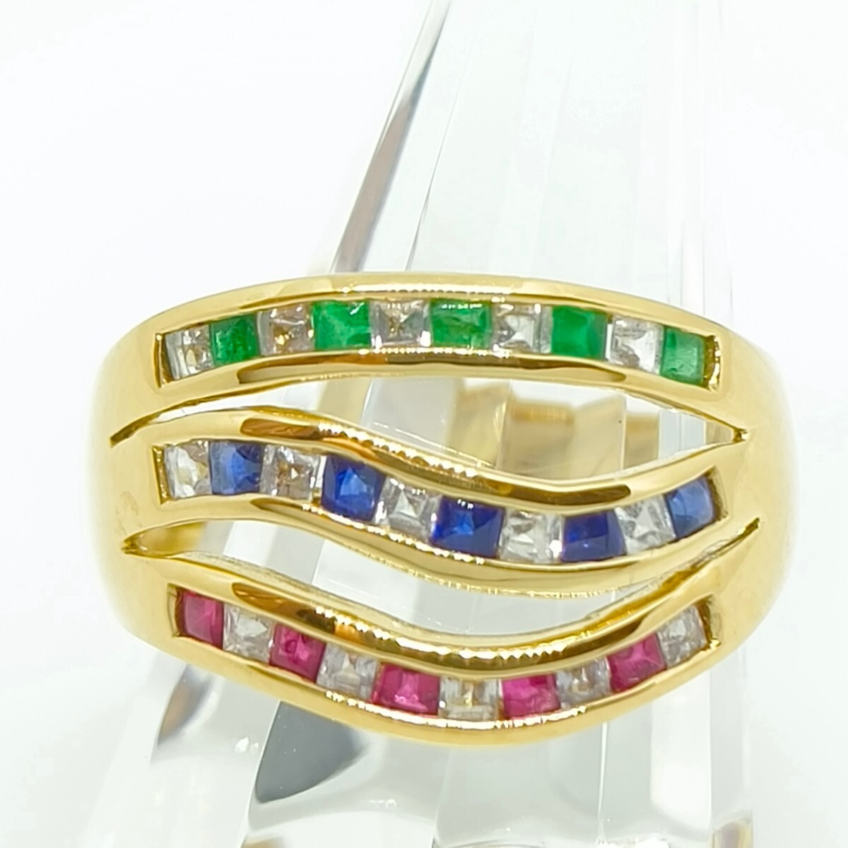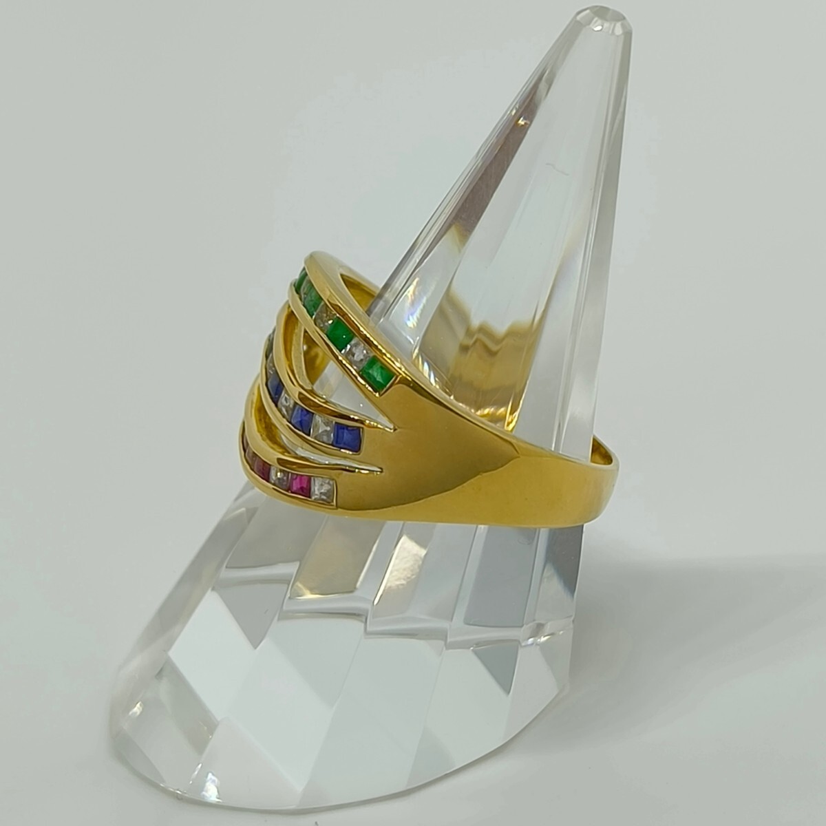 K18 ダイヤ、ルビー、サファイア、エメラルドの4大宝石が使われたリングです。