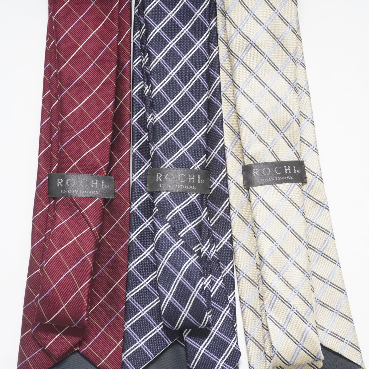 美品 ROCHI ロッチ ネクタイ まとめ売り チェック柄 シルク100% 紺 ネイビー ボルドー ベージュ@LG7