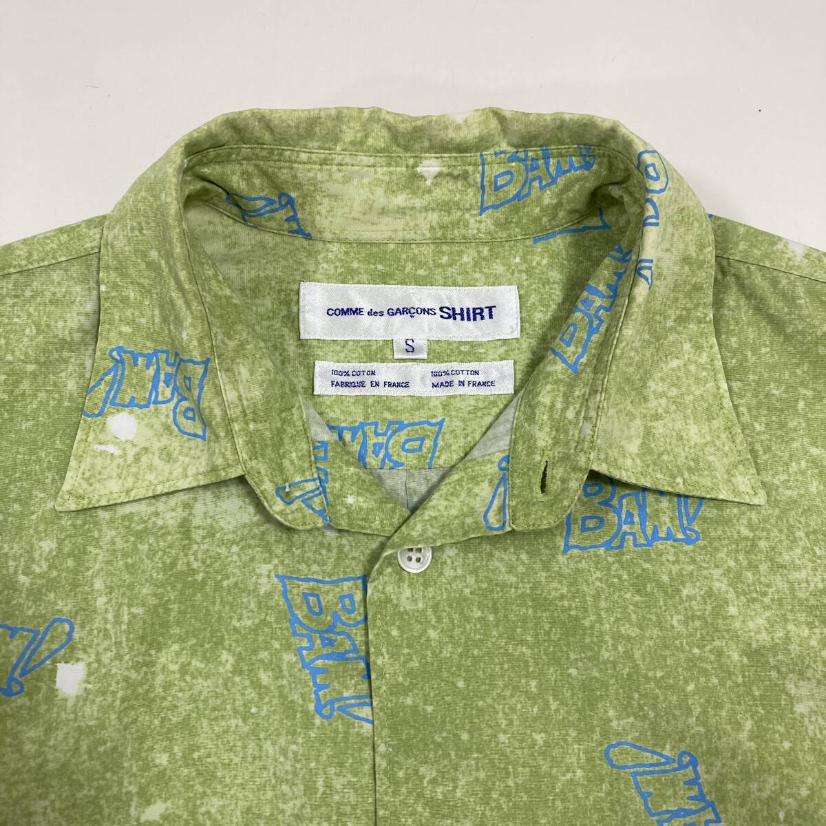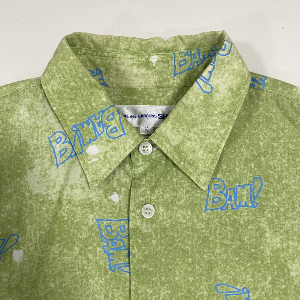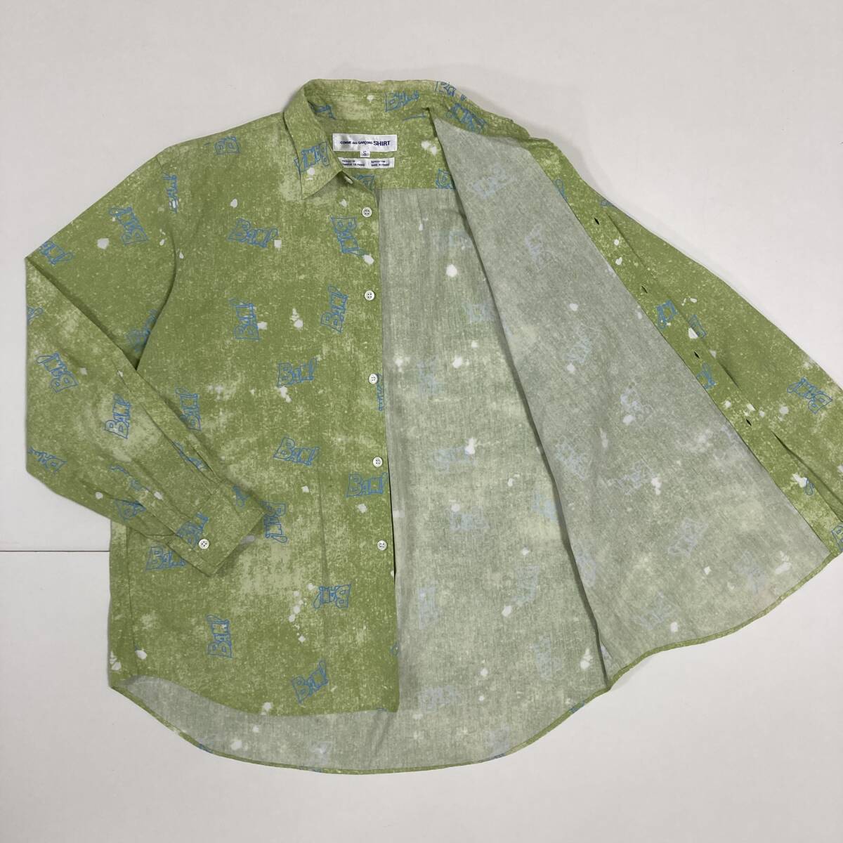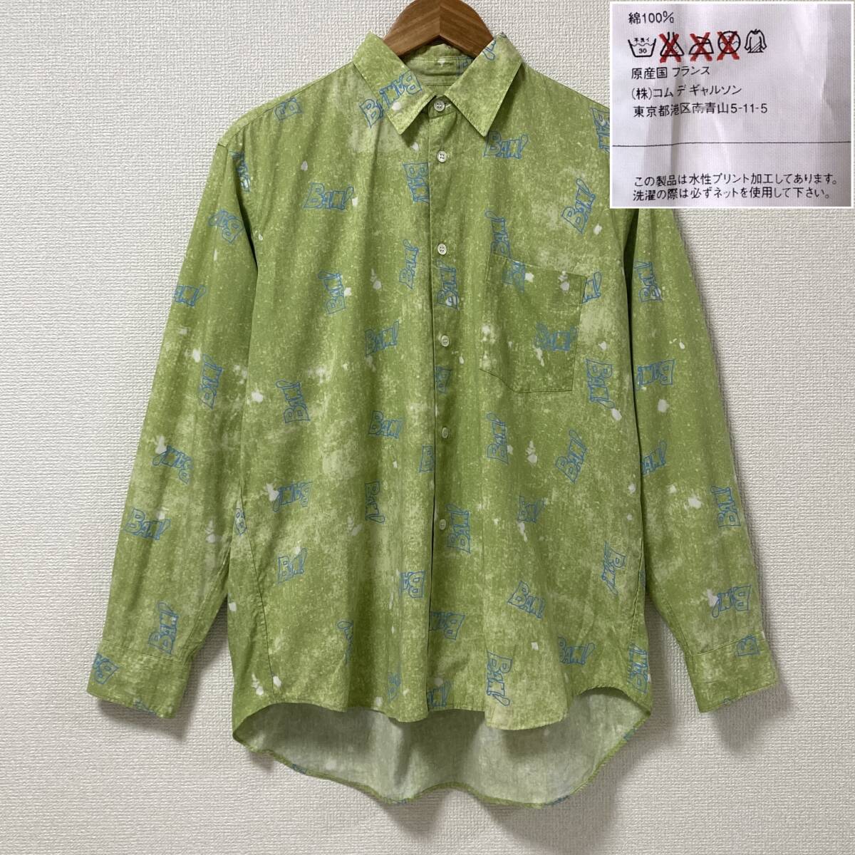 90s COMME des GARCONS SHIRT BAM! ロゴ 総柄 ムラ染め 長袖 シャツ Sサイズ 緑系 コムデギャルソンシャツ VINTAGE archive 4070435