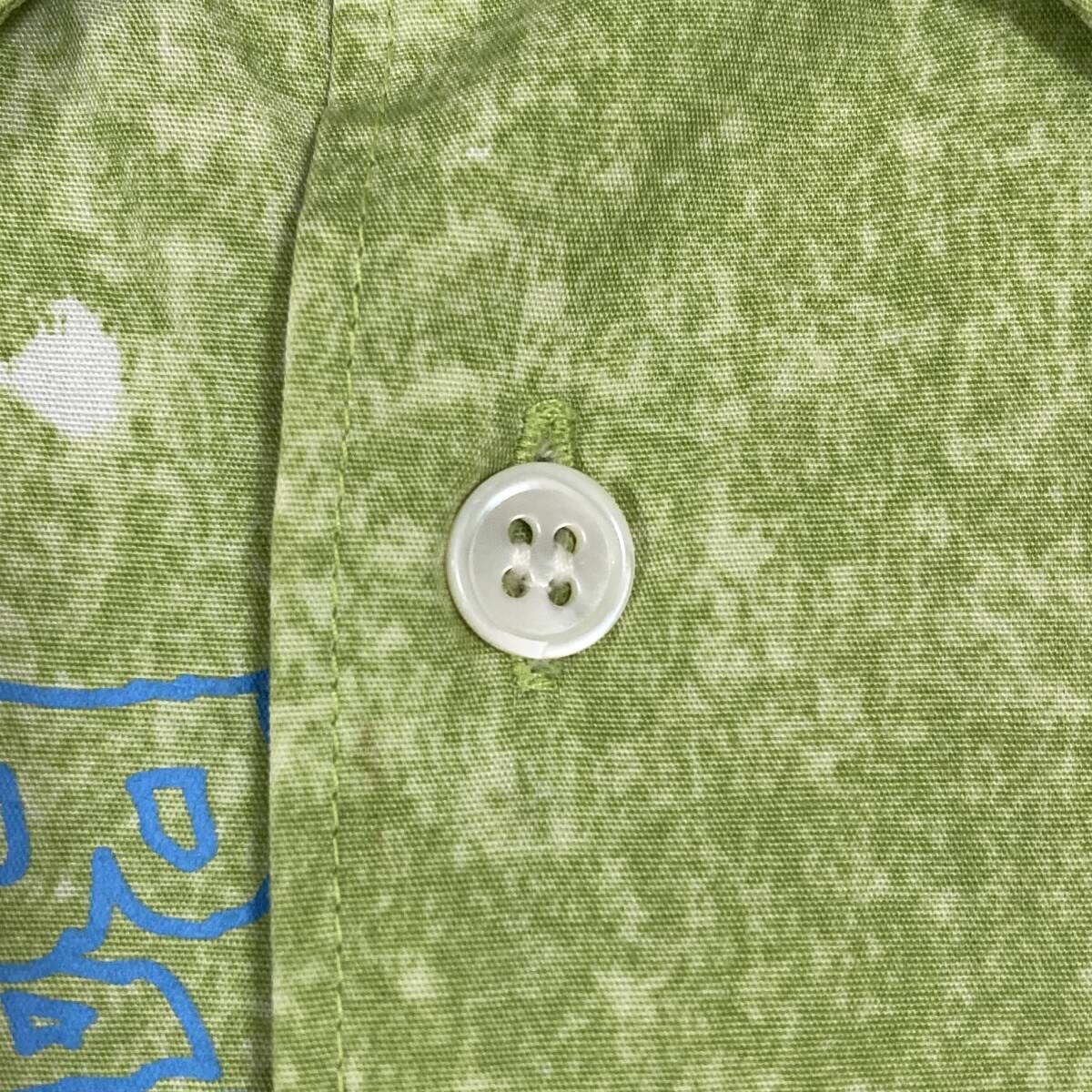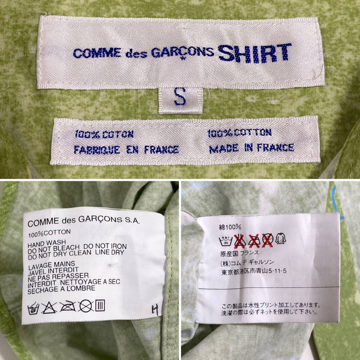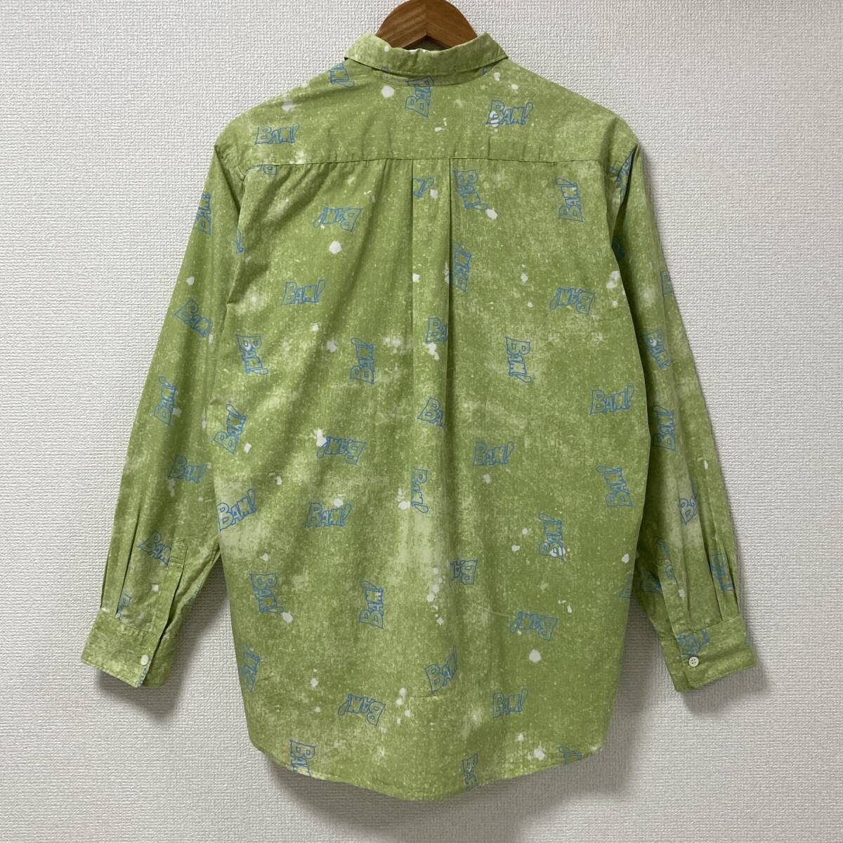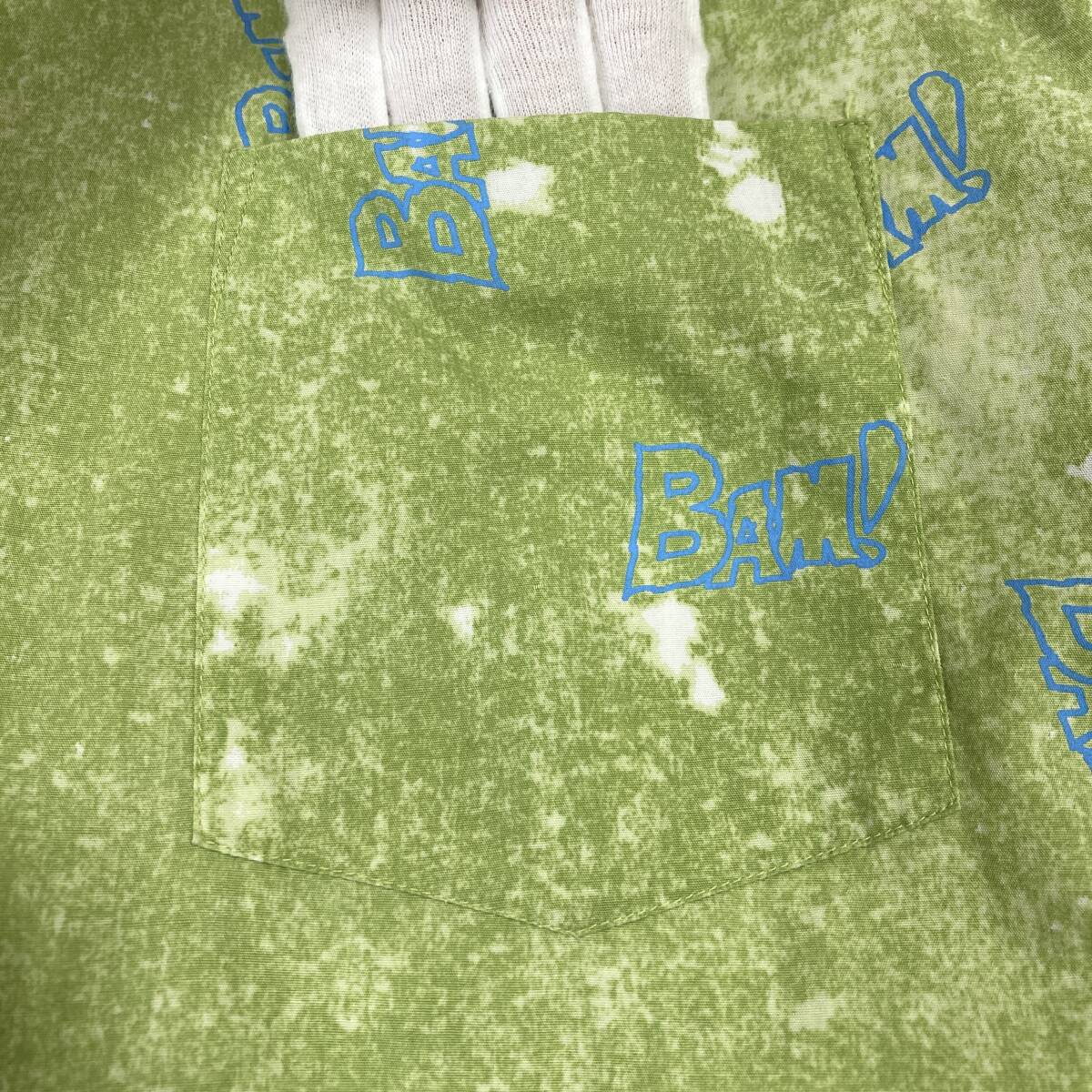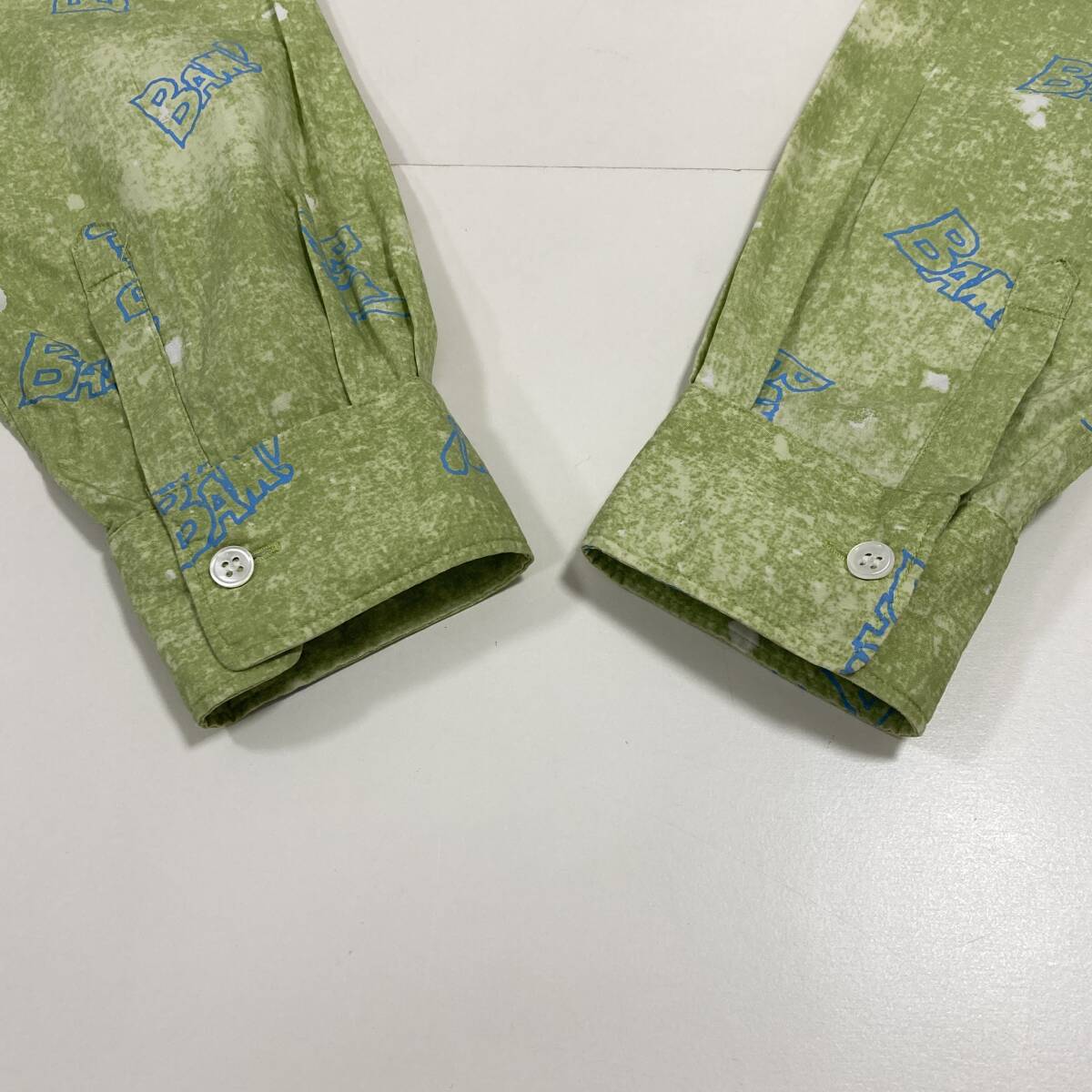 90s COMME des GARCONS SHIRT BAM! ロゴ 総柄 ムラ染め 長袖 シャツ Sサイズ 緑系 コムデギャルソンシャツ VINTAGE archive 4070435