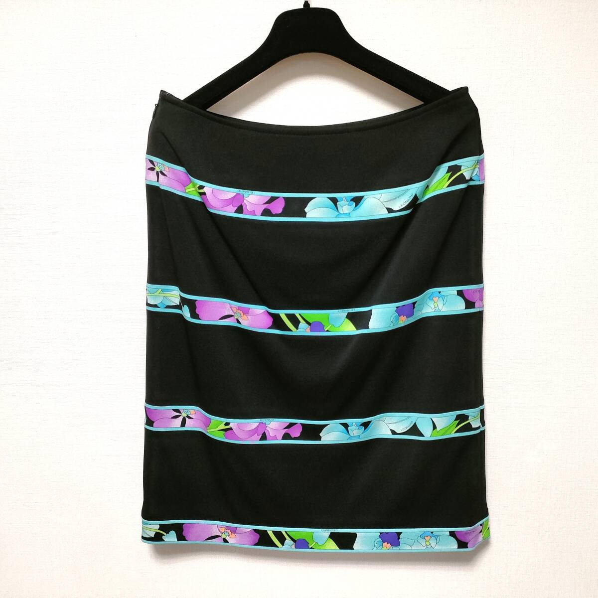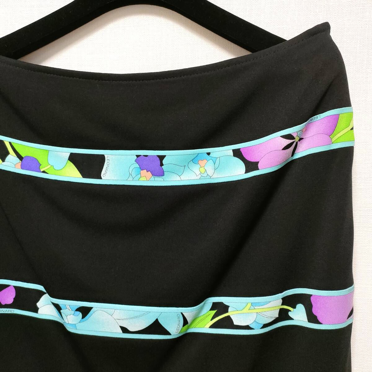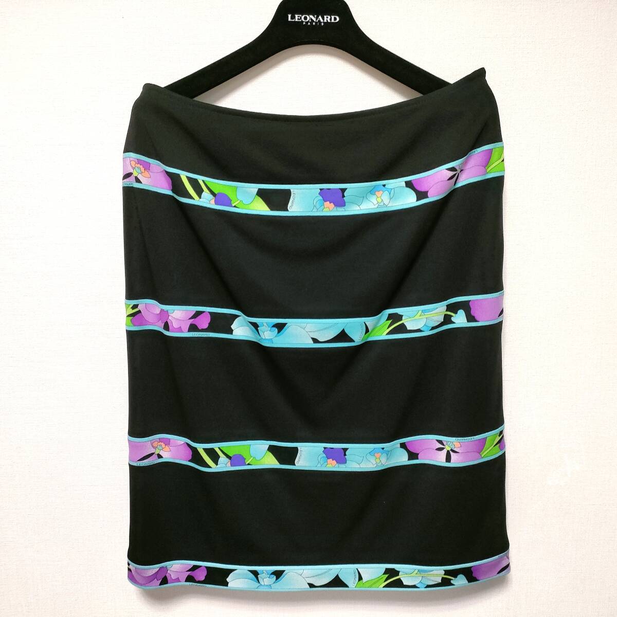 即決 送料込み ウエスト76㎝ ウエスト幅38 大きめ サイズ40 カンカン LEONARD レオナール スカート 花柄ライン