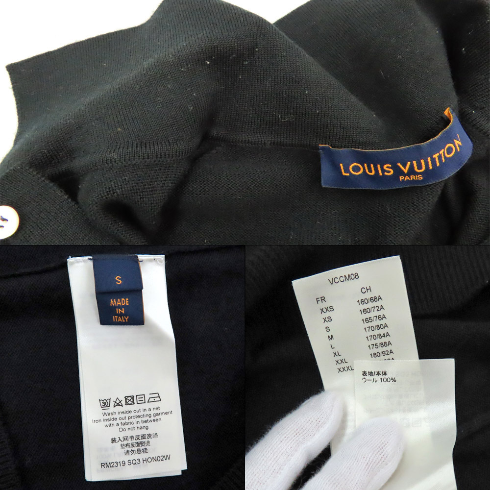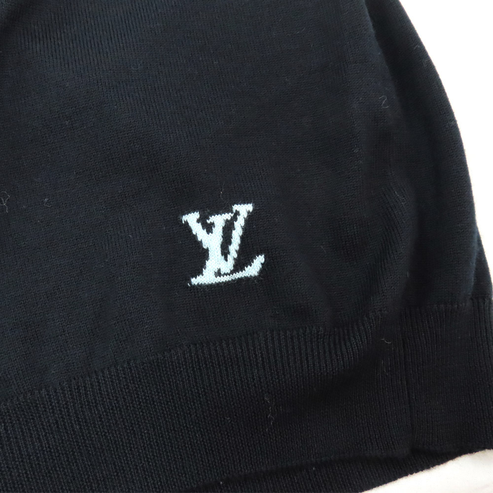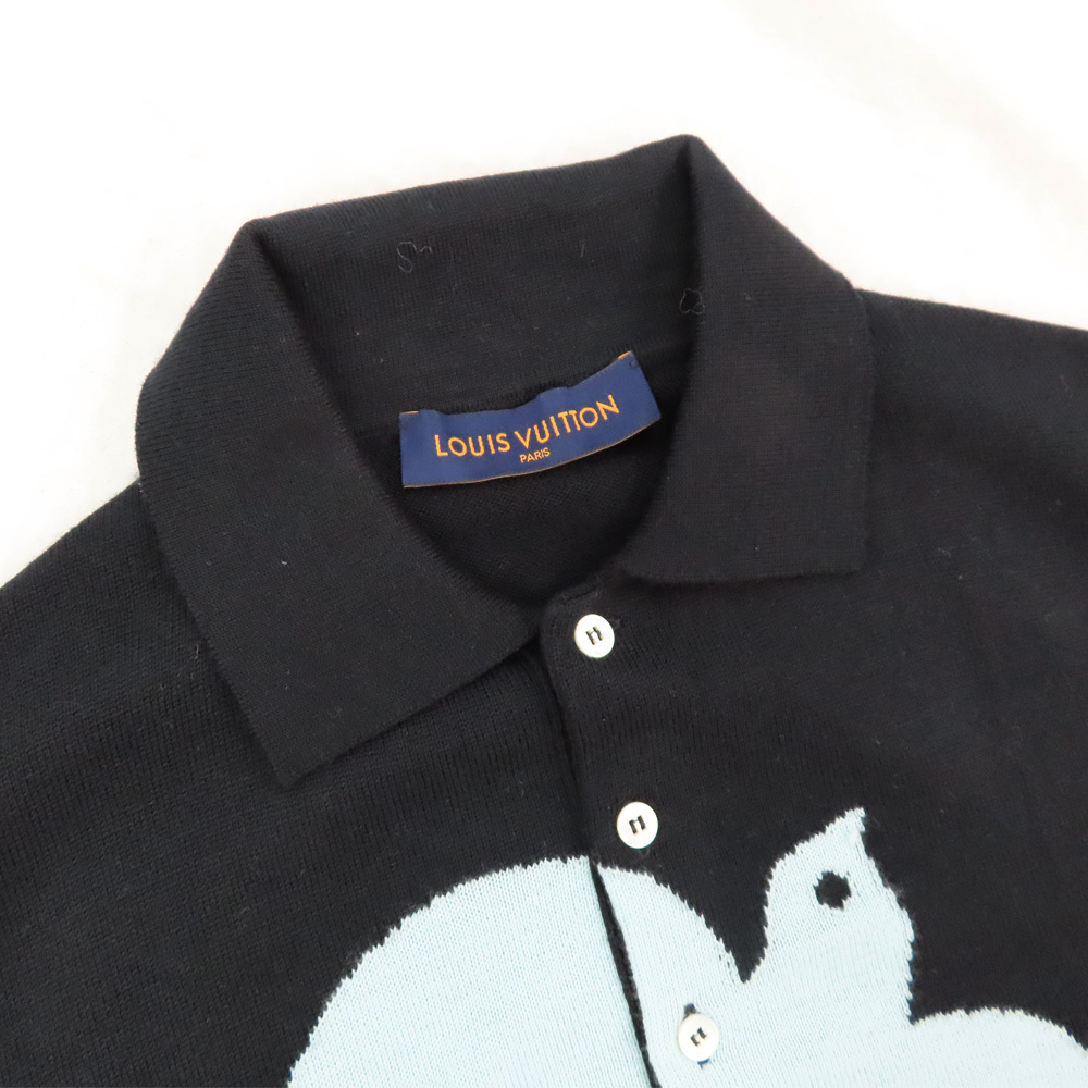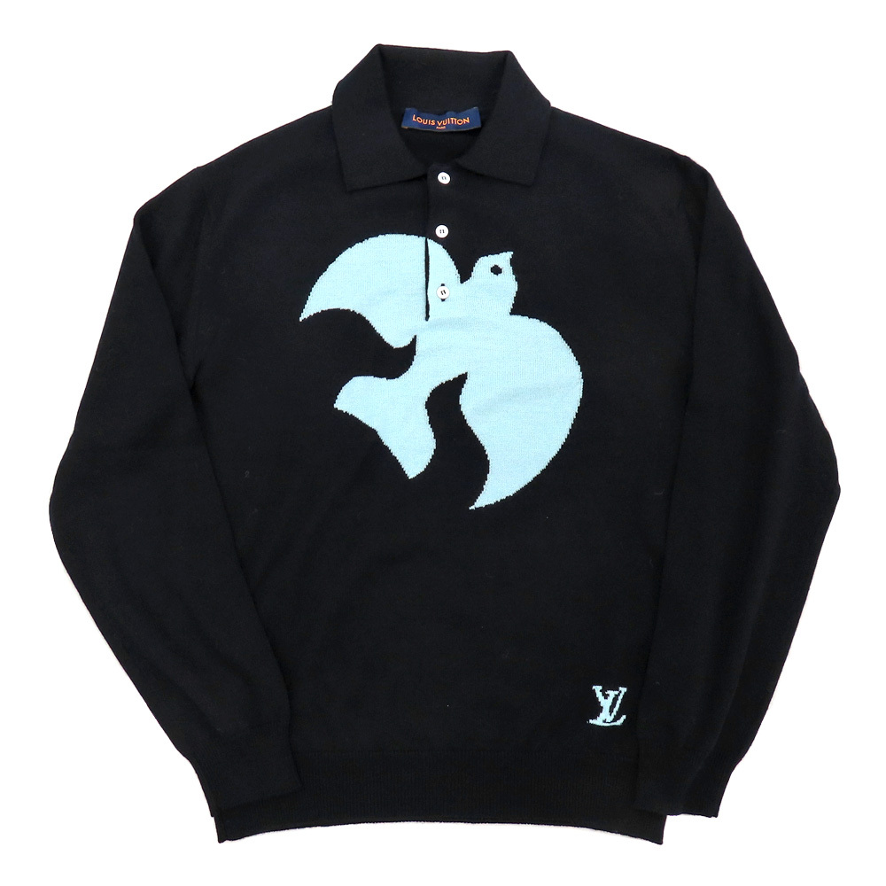 【名古屋】ルイヴィトン グラフィックロングスリーブニットポロ S ブラック LV ダヴ ペールブルー ウール アパレル 男