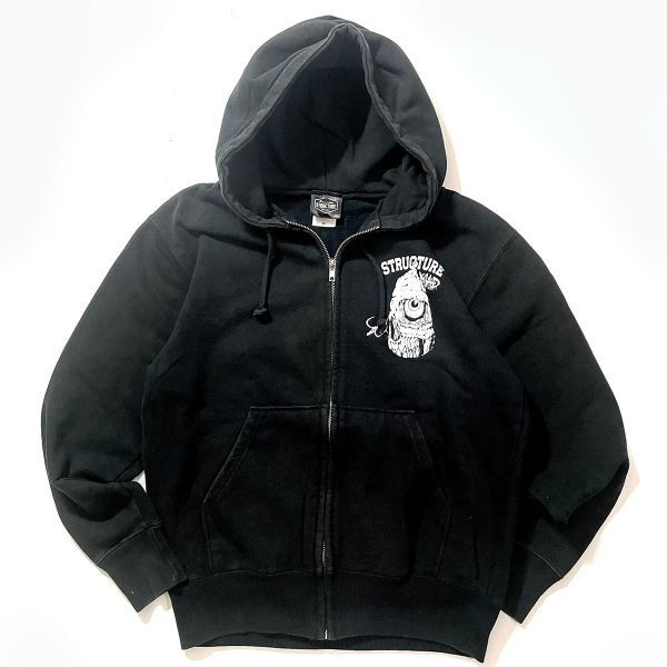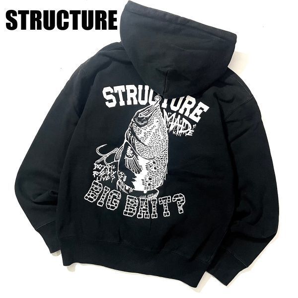 ☆STRUCTURE ストラクチャー☆BIG BAIT? ジップアップ スウェットパーカー 黒 BASS バス (M) S1400