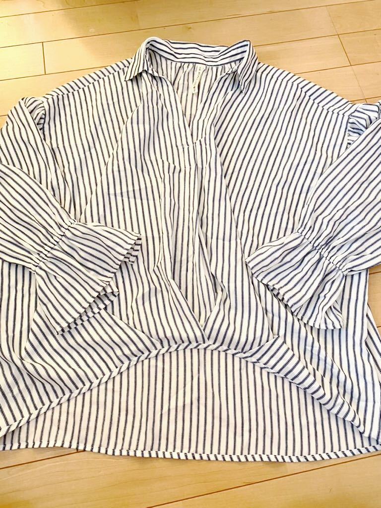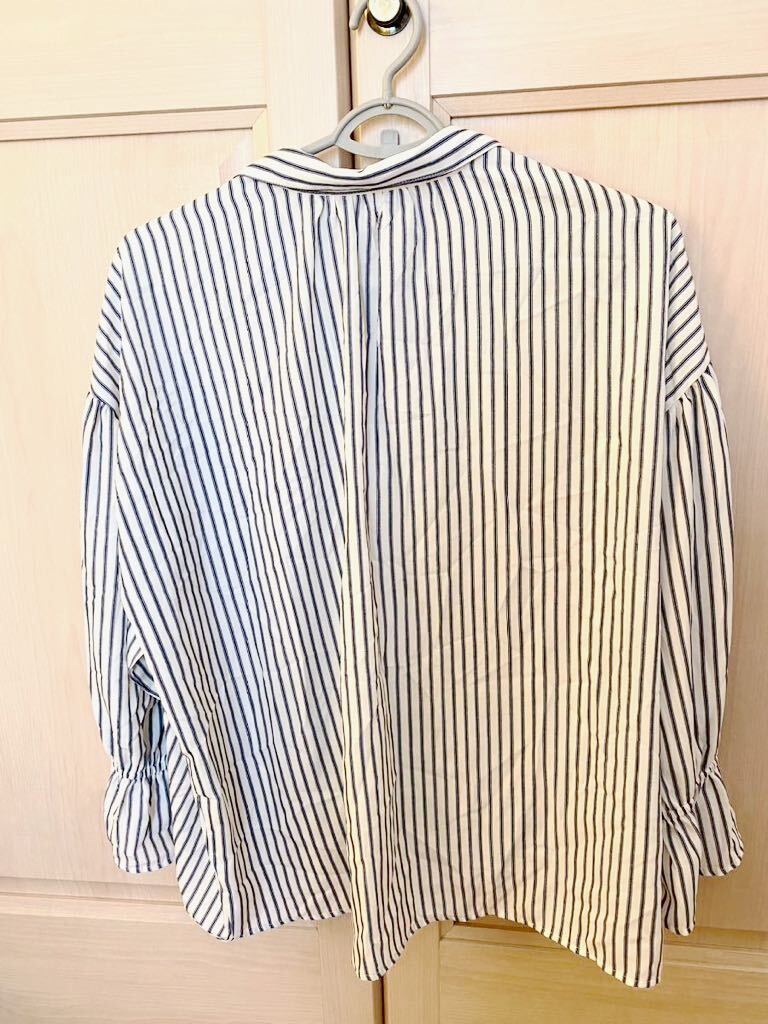 商品名: 一度使用 白紺ストライプ 7分袖オシャレ ブラウス
