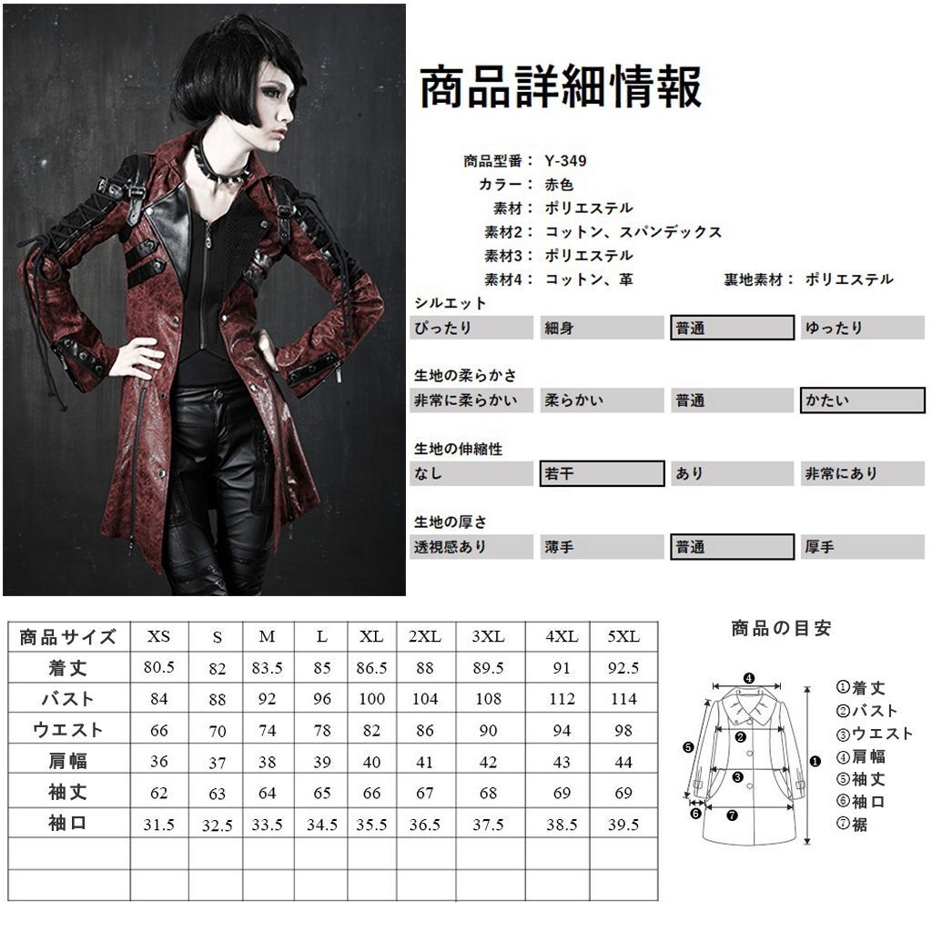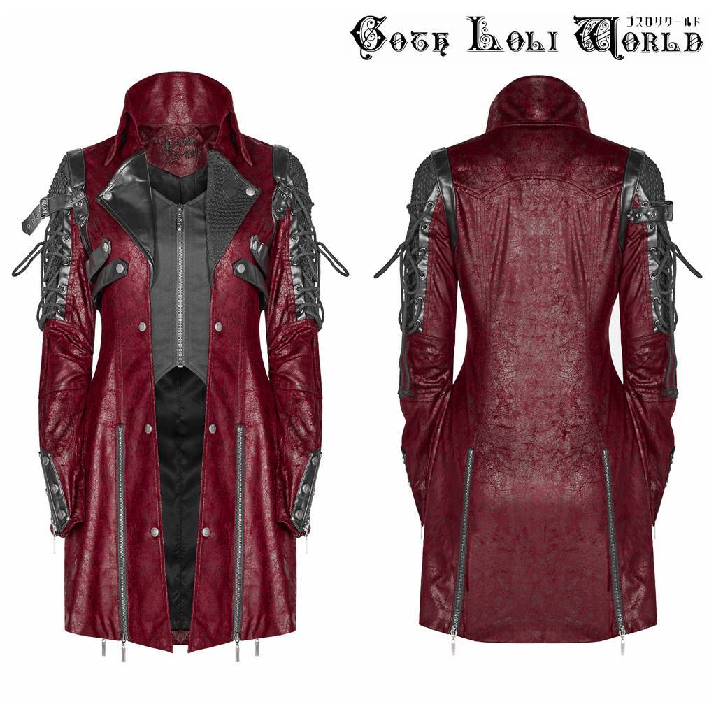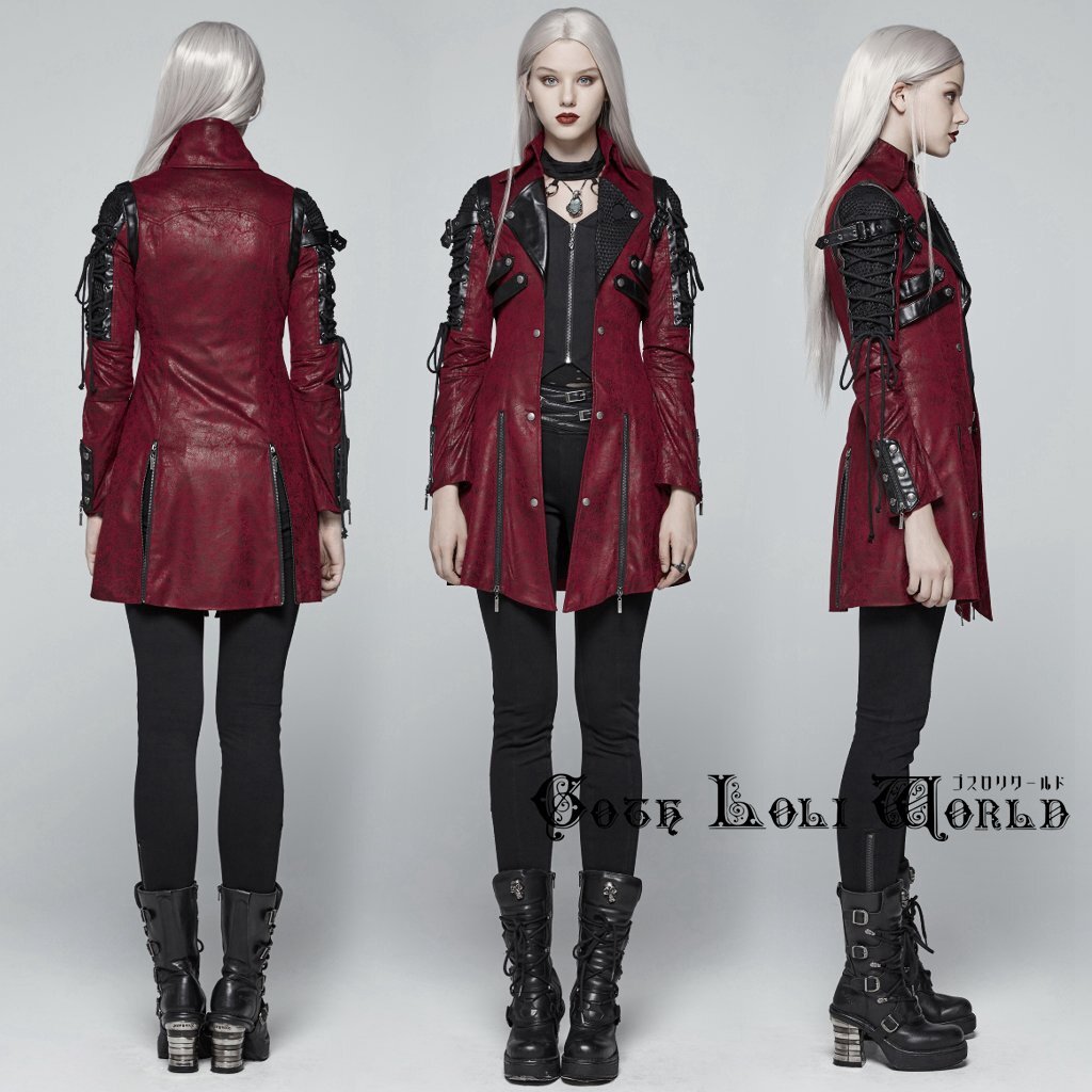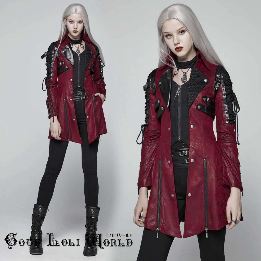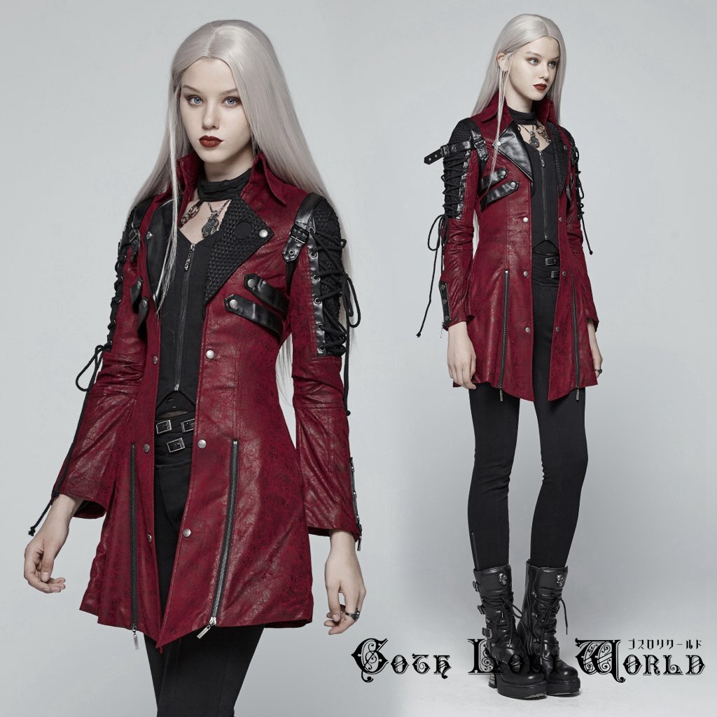 Y-349FRD-S アシンメトリーカラーレースアップミドル ジャケット レディース 赤色 ゴスロリワールド ゴシック パンク ロック ロリィタ V系