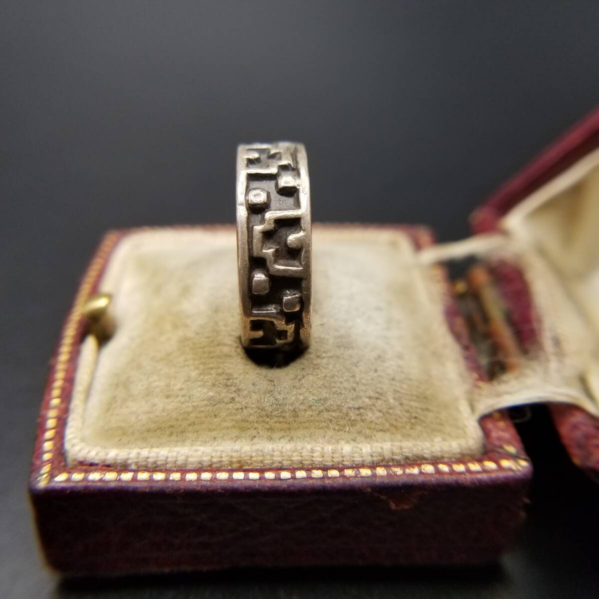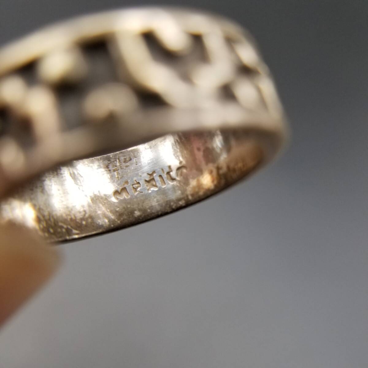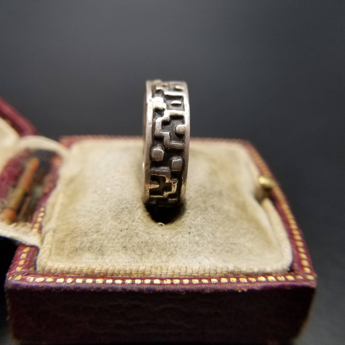 メキシコ 925 シルバー 凸凹 模様彫刻 エタニティ ヴィンテージ バンド リング 中太 銀 指輪 レトロ ユニセックス MIEXICO Y18-Q