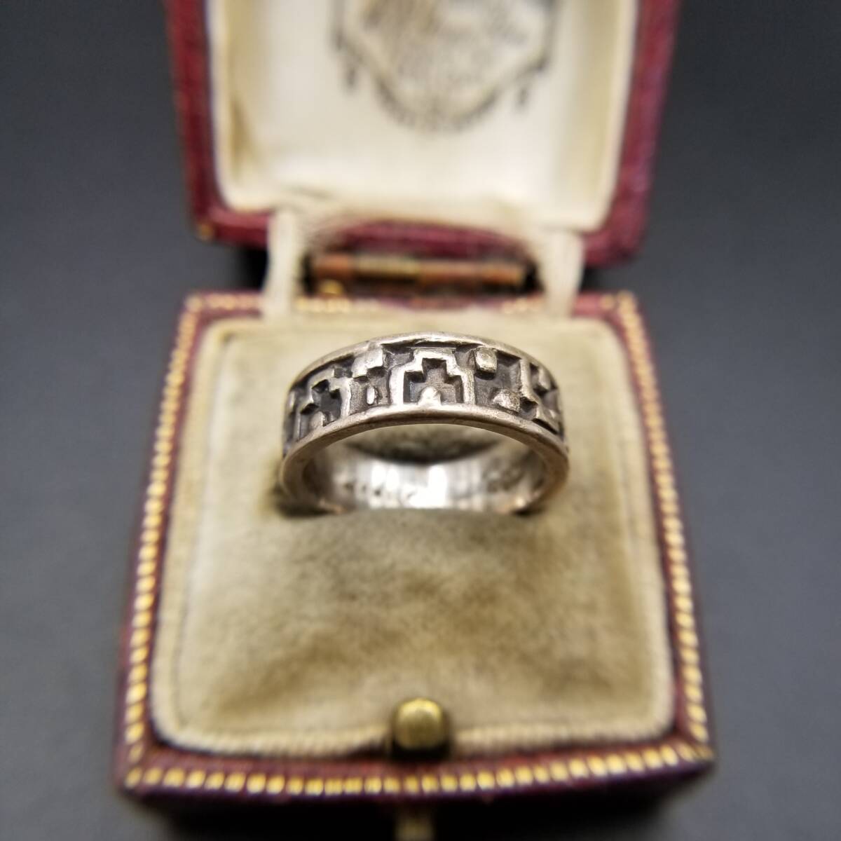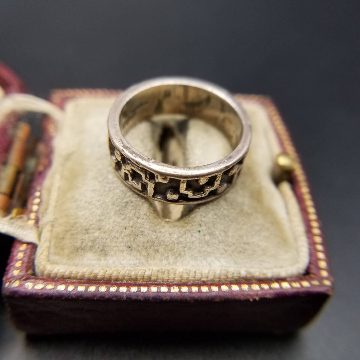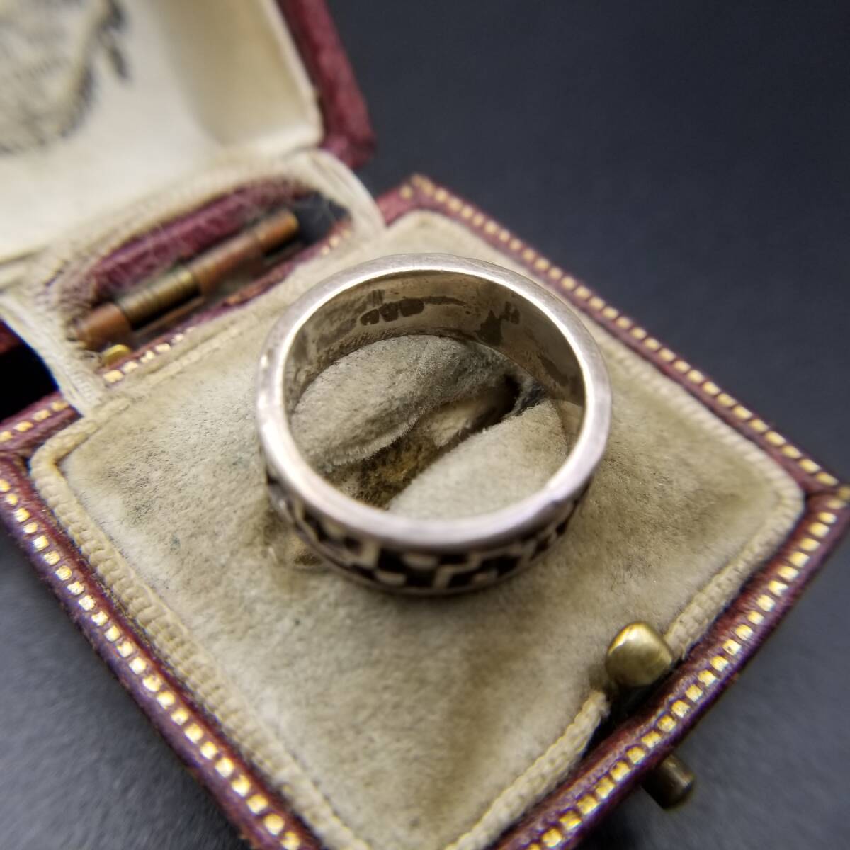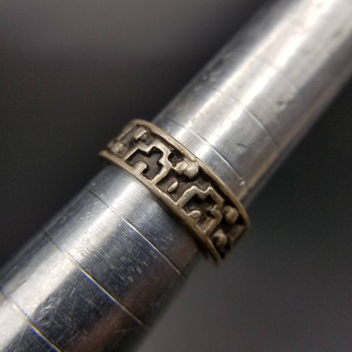 メキシコ 925 シルバー 凸凹 模様彫刻 エタニティ ヴィンテージ バンド リング 中太 銀 指輪 レトロ ユニセックス MIEXICO Y18-Q