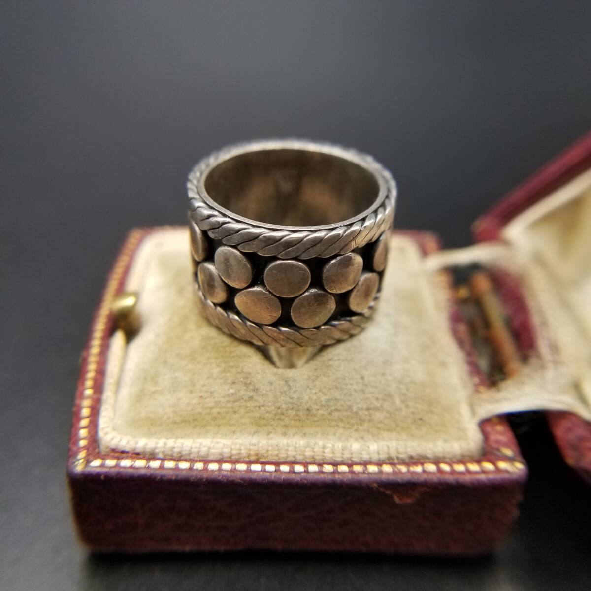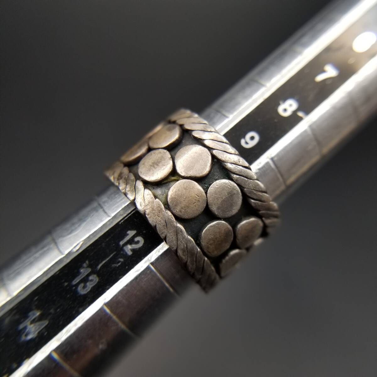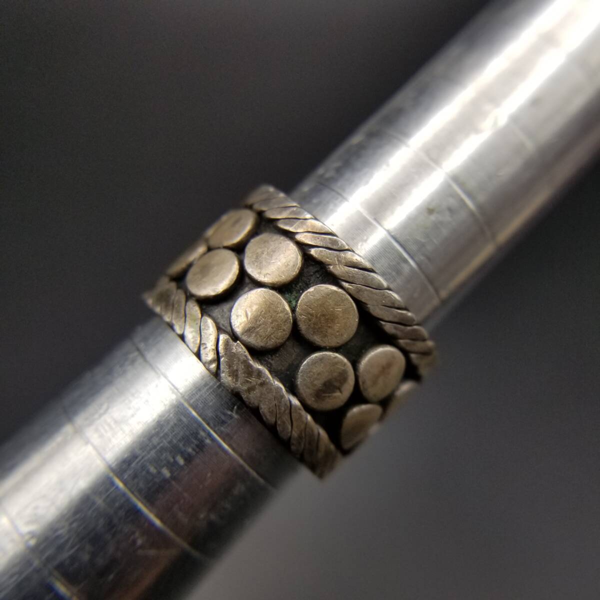 BA ドット柄 丸 ロープ編み エタニティ 925 シルバー ヴィンテージ バンド リング 極幅広 指輪 ユニセックス 個性派ジュエリー Y18-Q