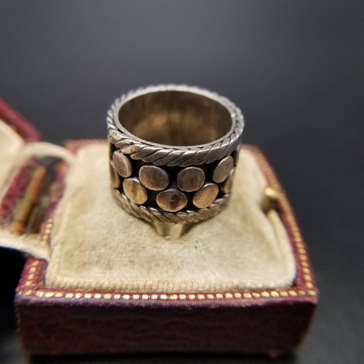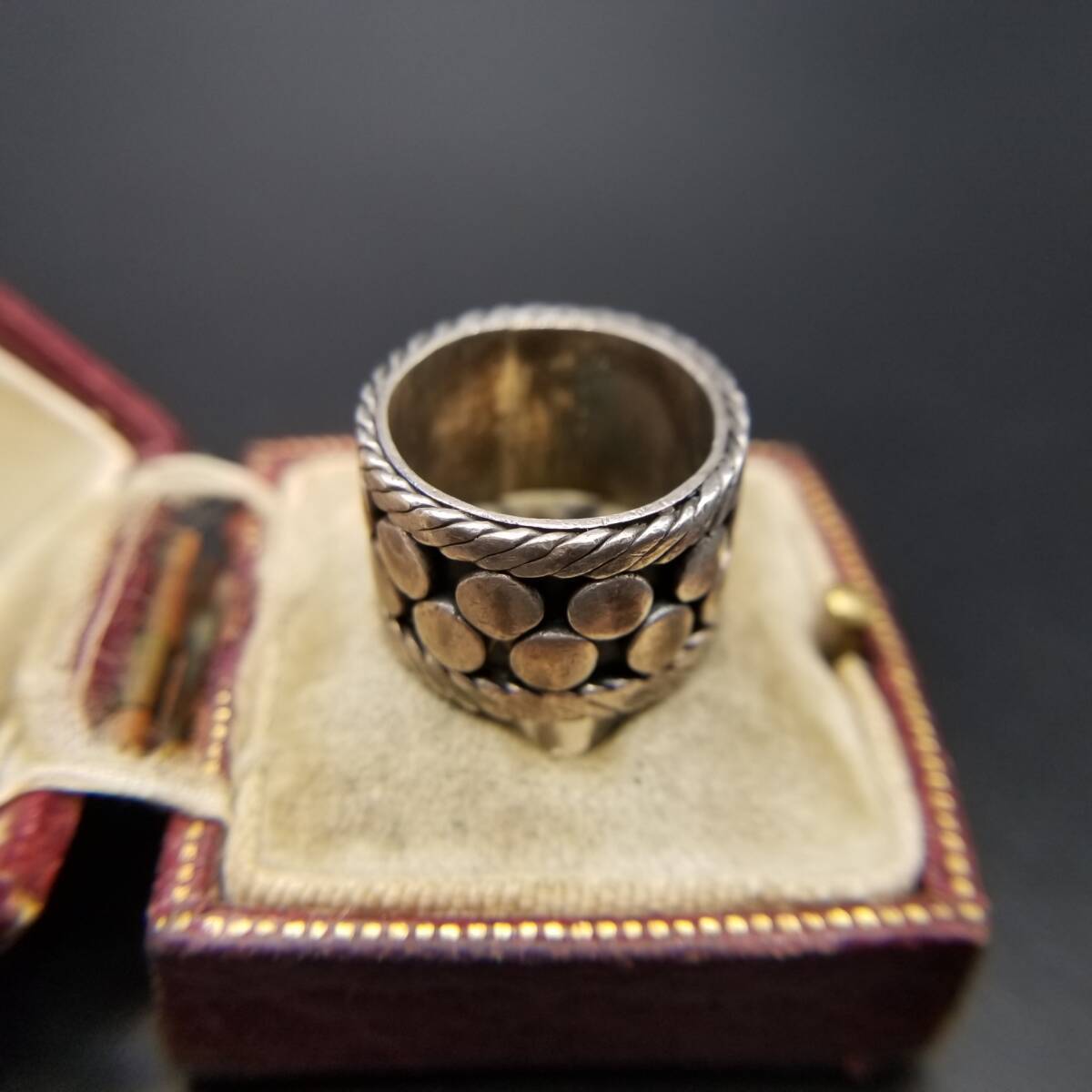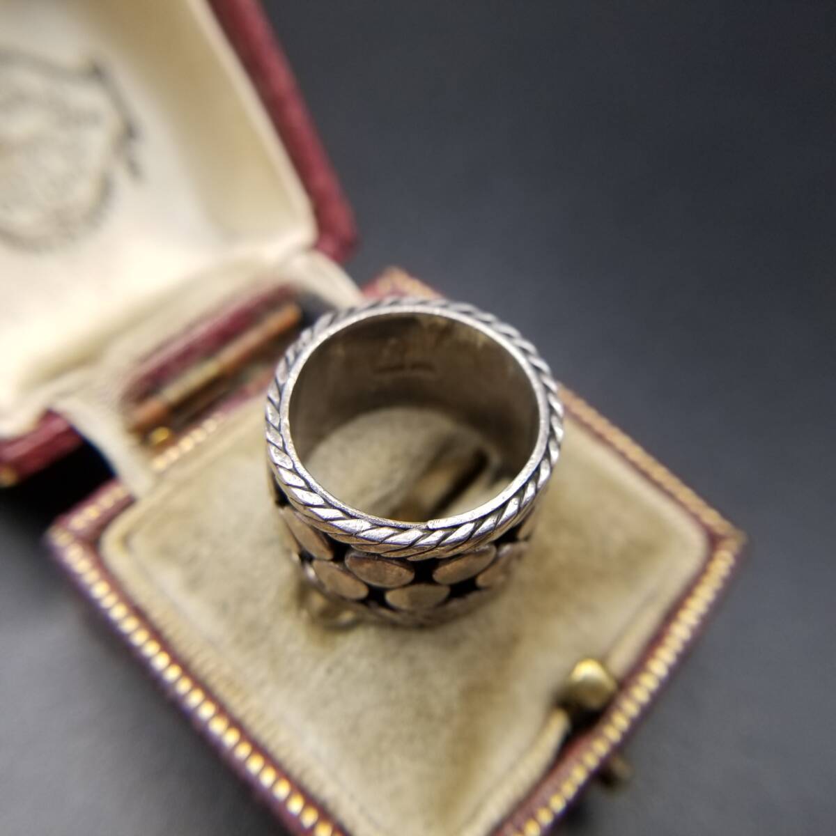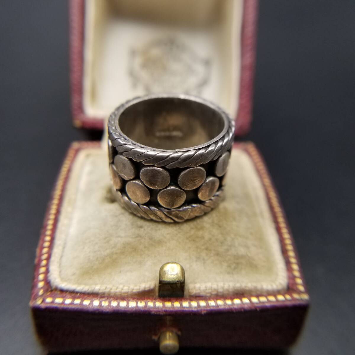 BA ドット柄 丸 ロープ編み エタニティ 925 シルバー ヴィンテージ バンド リング 極幅広 指輪 ユニセックス 個性派ジュエリー Y18-Q