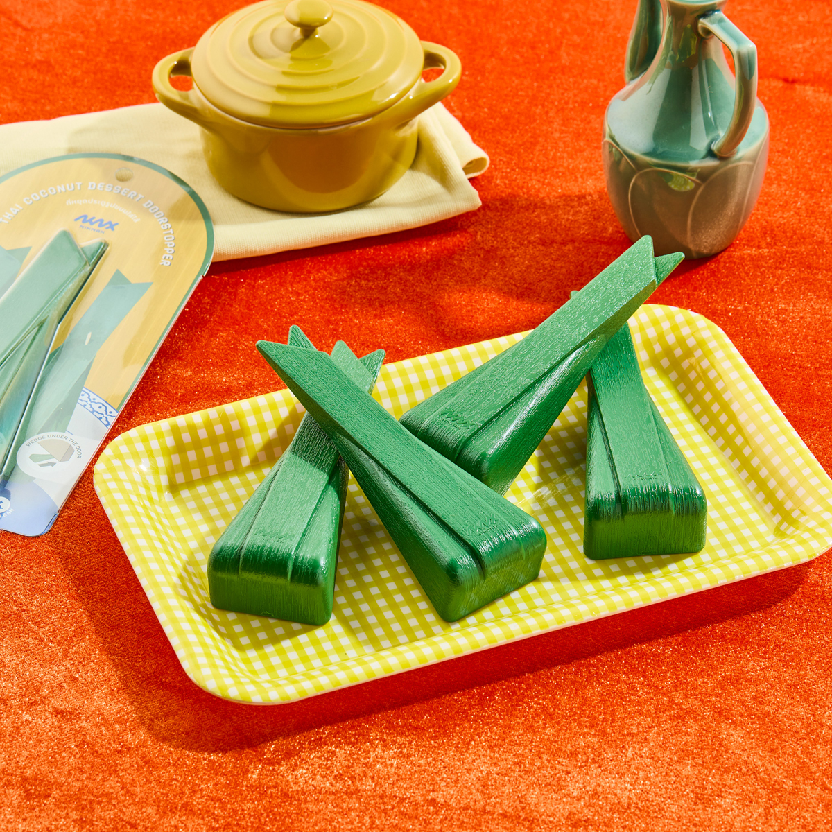 | 商品説明 | "Thai Coconut Dessert Door Stopper "は「カノムサイサイ(カノムソートサイ)」と呼ばれる、バナナの葉で包まれたタイの伝統的なお菓子をモチーフとしたドアストッパーです。 使い方は簡単で、ドアと床の隙間にストッパーを挟み込むだけ。 ドアストッパーがあると、お掃除などの際にも便利ですね。 可愛らしいデザインで、そのまま置物としても飾れちゃいそうです。 |