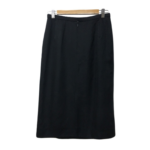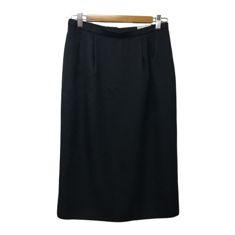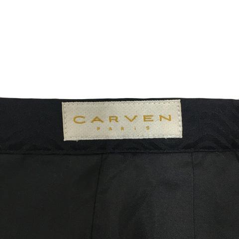 カルヴェン CARVEN スカート タイト ひざ丈 タック 総柄 シルク 11 黒 ブラック レディース