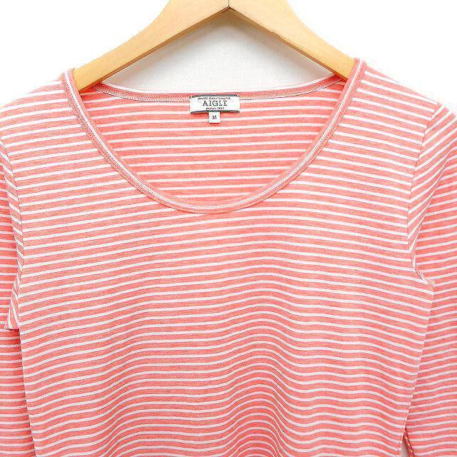 エーグル AIGLE ボーダー柄 カットソー Tシャツ 七分袖 丸首 M ピンク /FT49 レディース