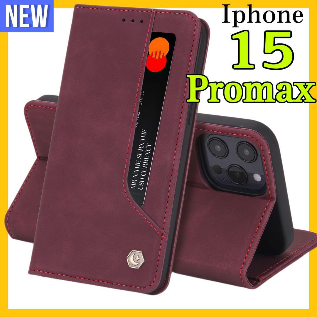 手帳型ケース iPhone15ProMax ケース 赤色 アイホン15プロマックス ケース カード収納 タンド機能 薄型 軽量 シンプル ビジネス 上質でPUレザー アップル スマホケース お札収納 ソフトTPU カード入れ マグネット内蔵 財布型