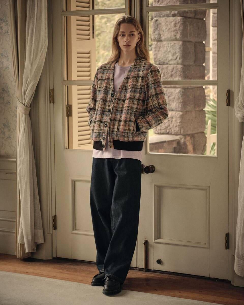 スコットランドの老舗テキスタイルメーカー、ロキャロン社のツイード生地を使用したカーディガンジャケット