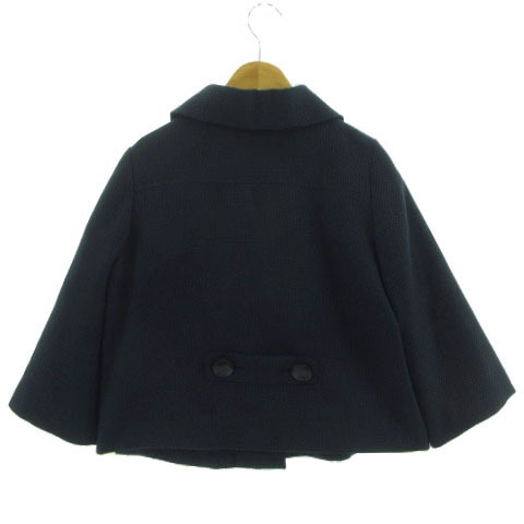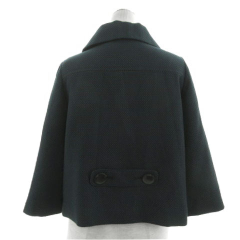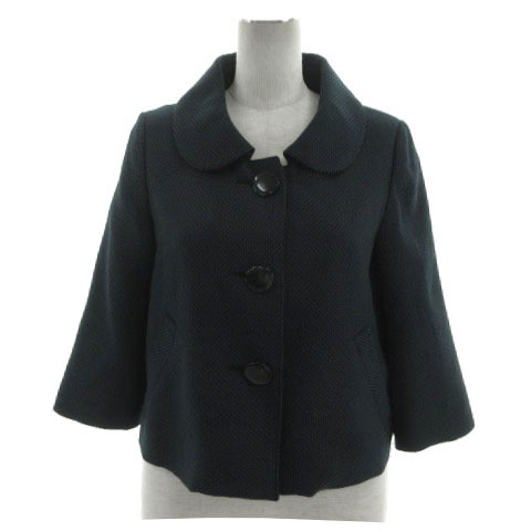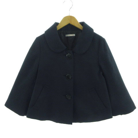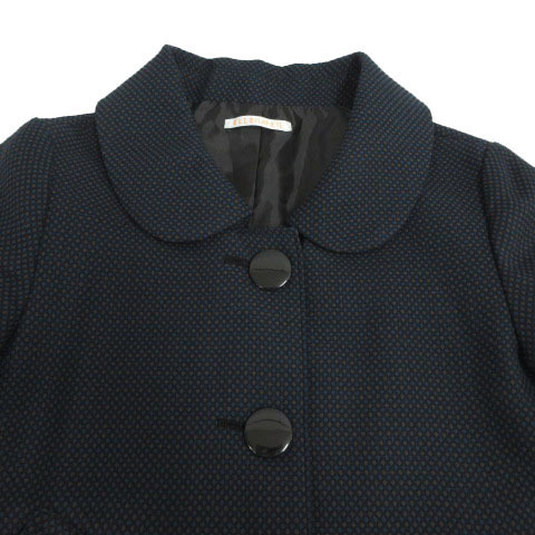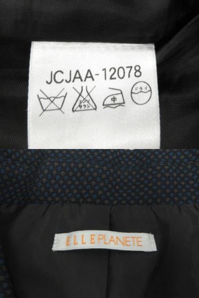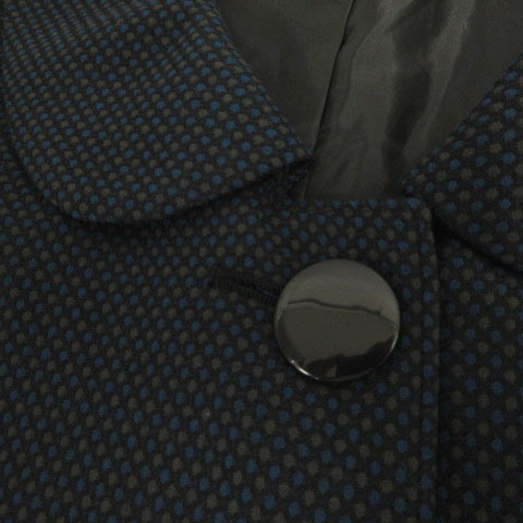 エルプラネット ELLE PLANETE ジャケット 丸襟 七分袖 Aライン ビッグボタン 総柄 ブルー系 青系 ネイビー系 紺系 グレー系 38