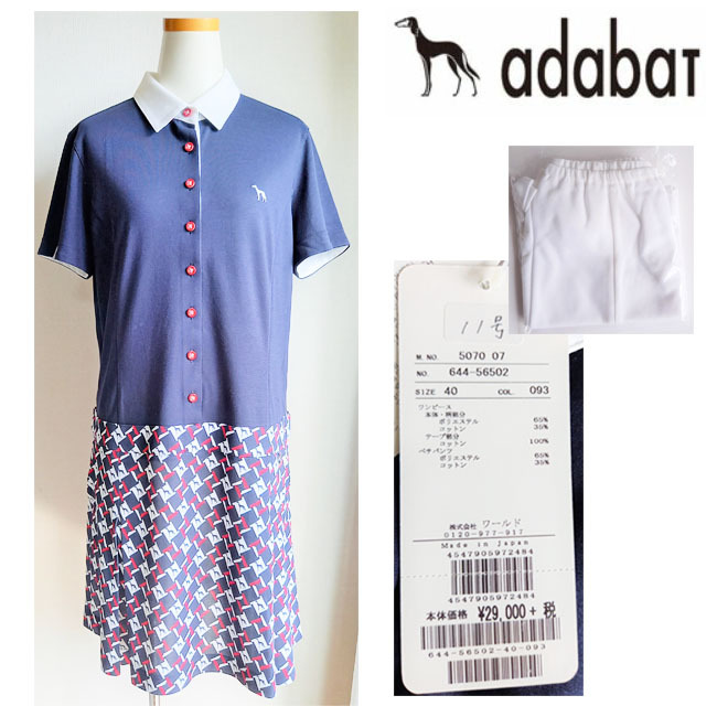 【新品・値札タグ付き】 定価29,000円 adabat アダバット レディース ワンピース UVカット 吸水速乾 40 ゴルフウエア 紺 Ladies