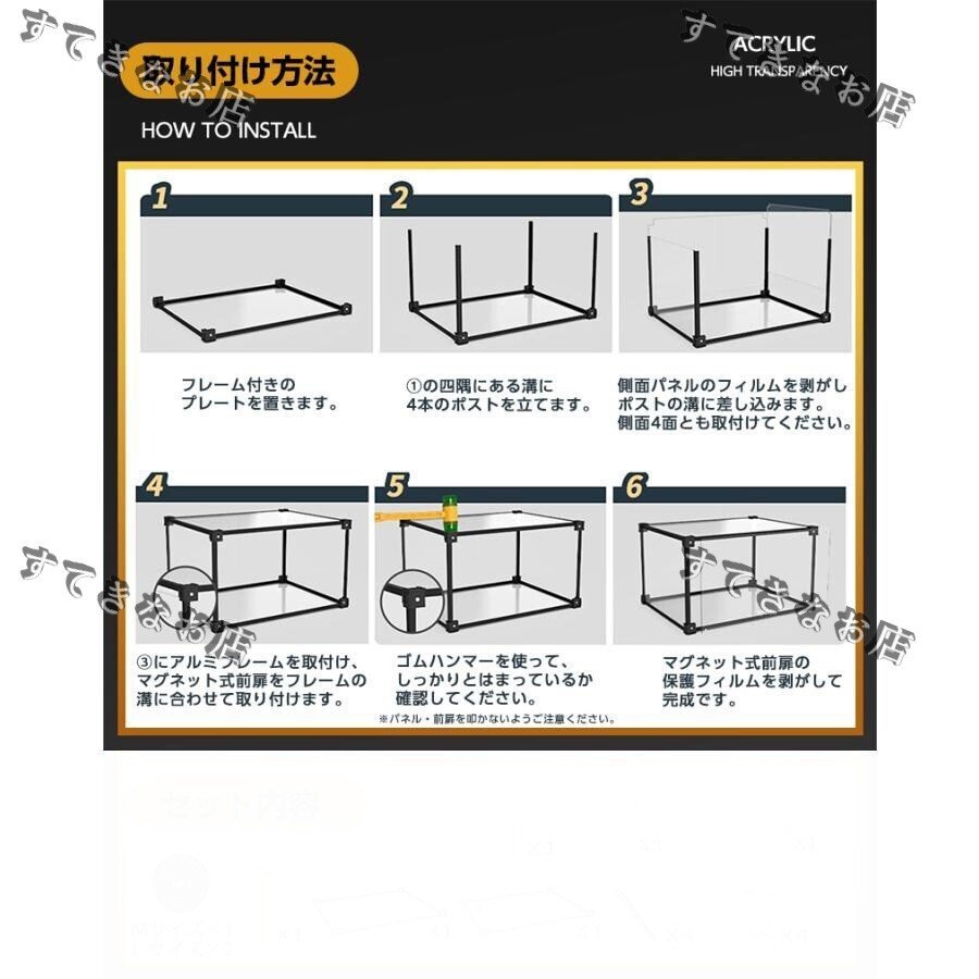 【製品仕様】透明アクリル板*6(面)、アルミニウム合金枠  組立後サイズ【外寸】 はめ込み式だから実内寸約1cm短くなります