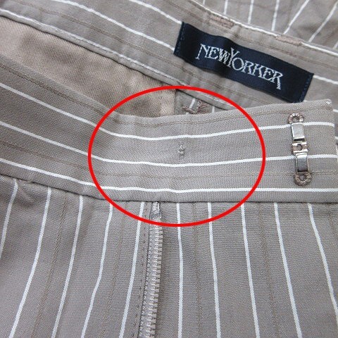 ニューヨーカー NEWYORKER ガウチョパンツ ストライプ 麻混 リネン混 9 ベージュ /YI レディース