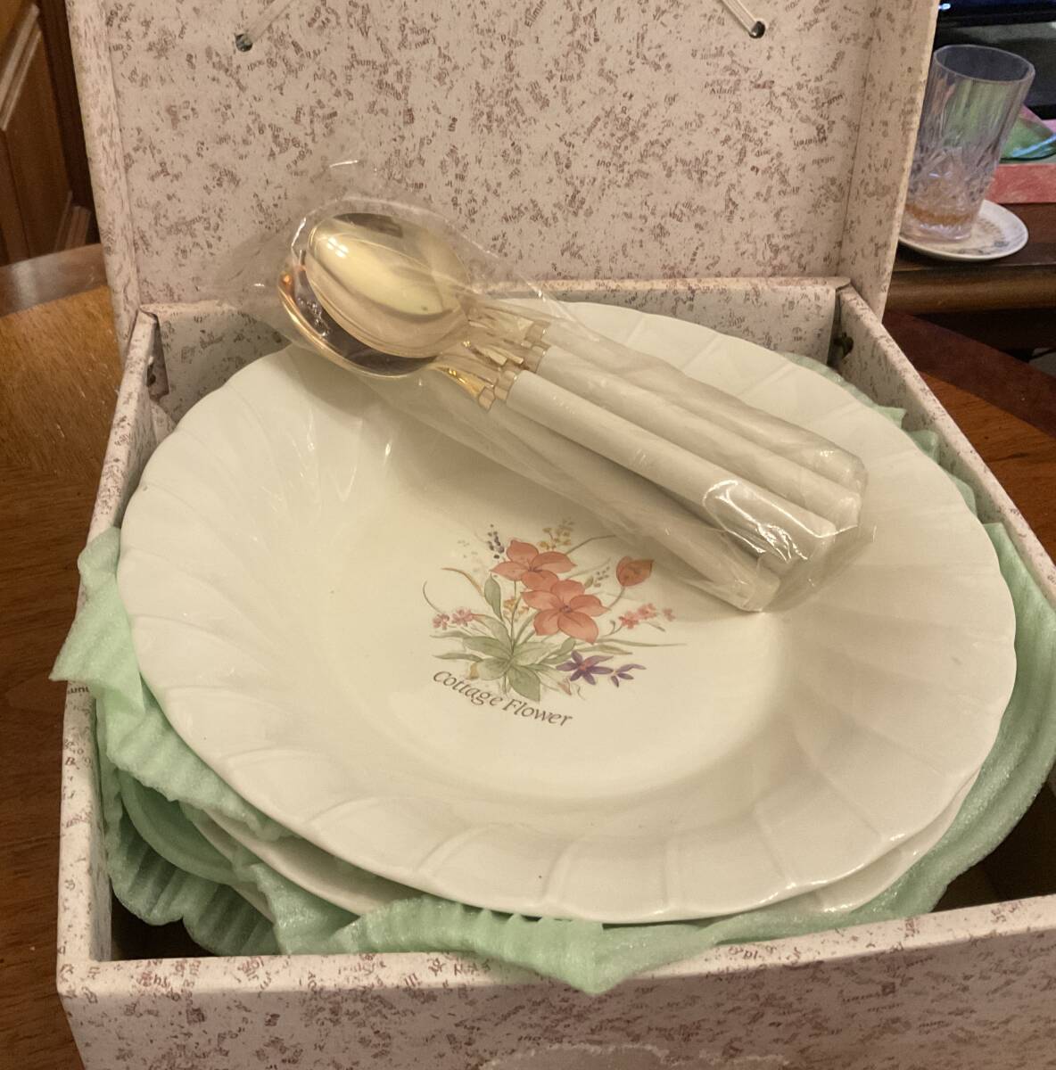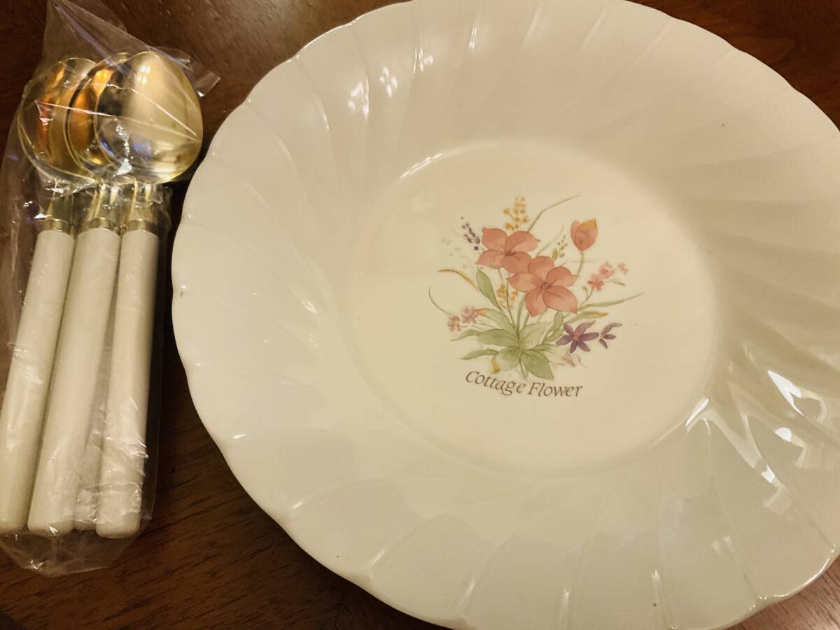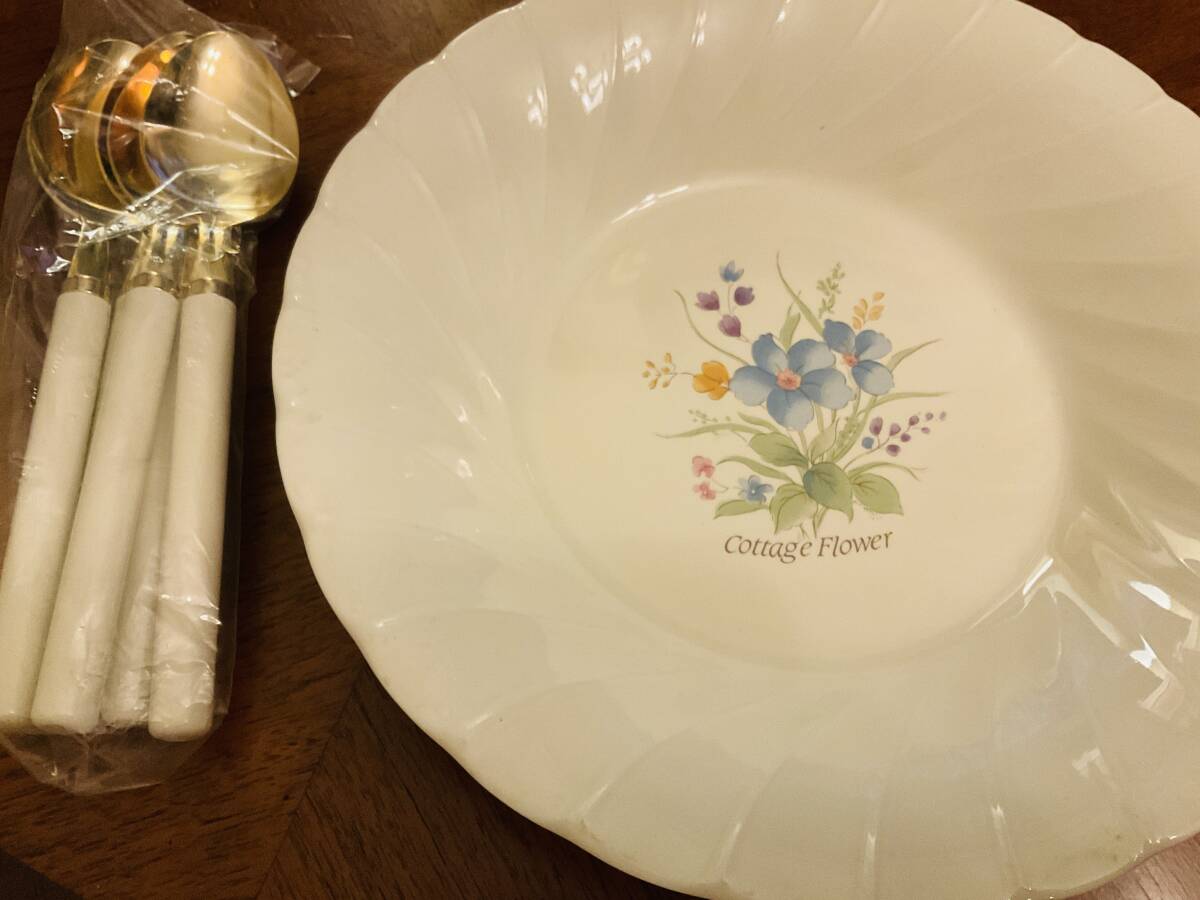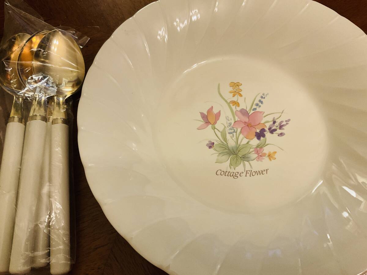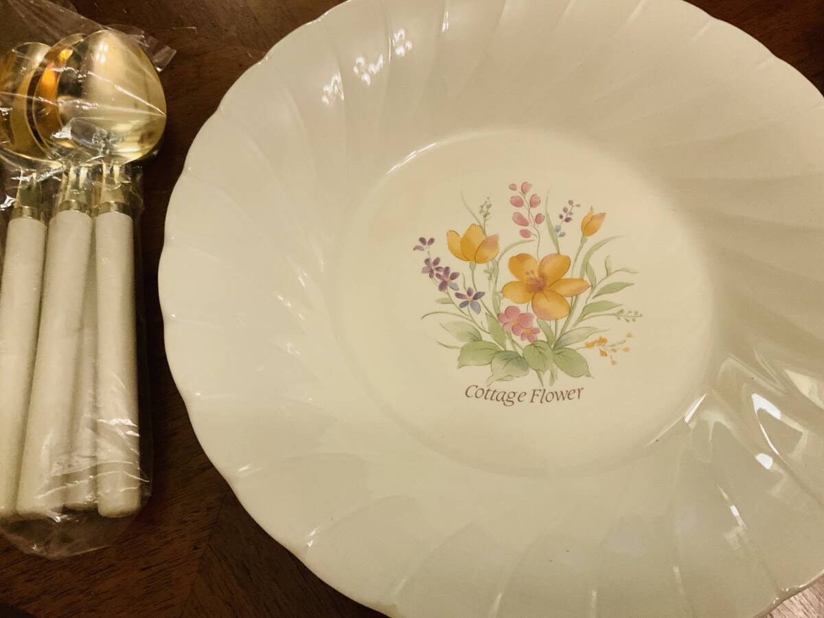 皿の地の色と同じ柄を持ったスプーン6本付きです