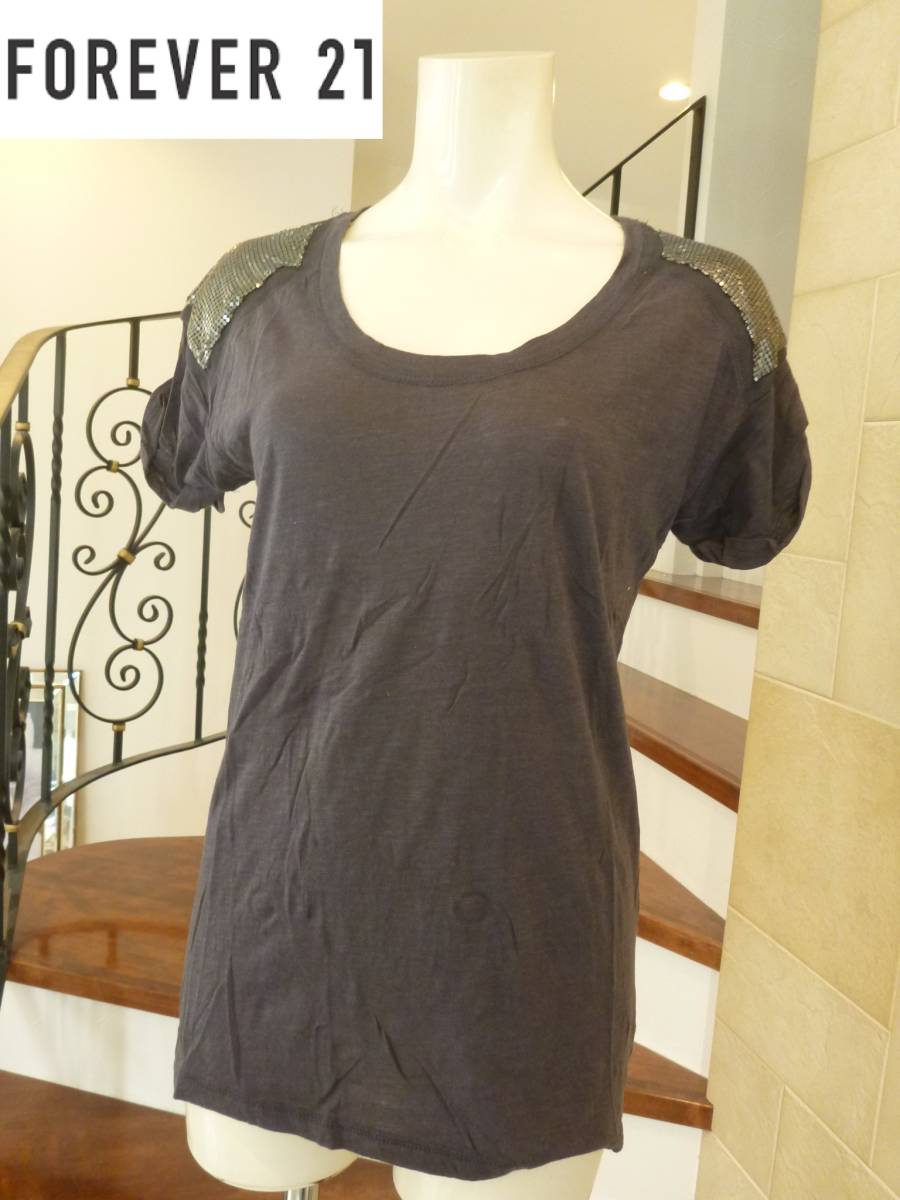 超美品 Forever21 フォーエバー21★グレー 半袖 カットソー M相当