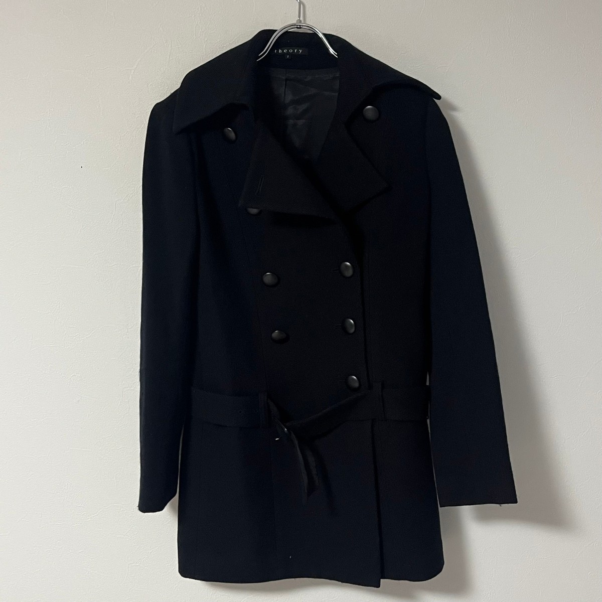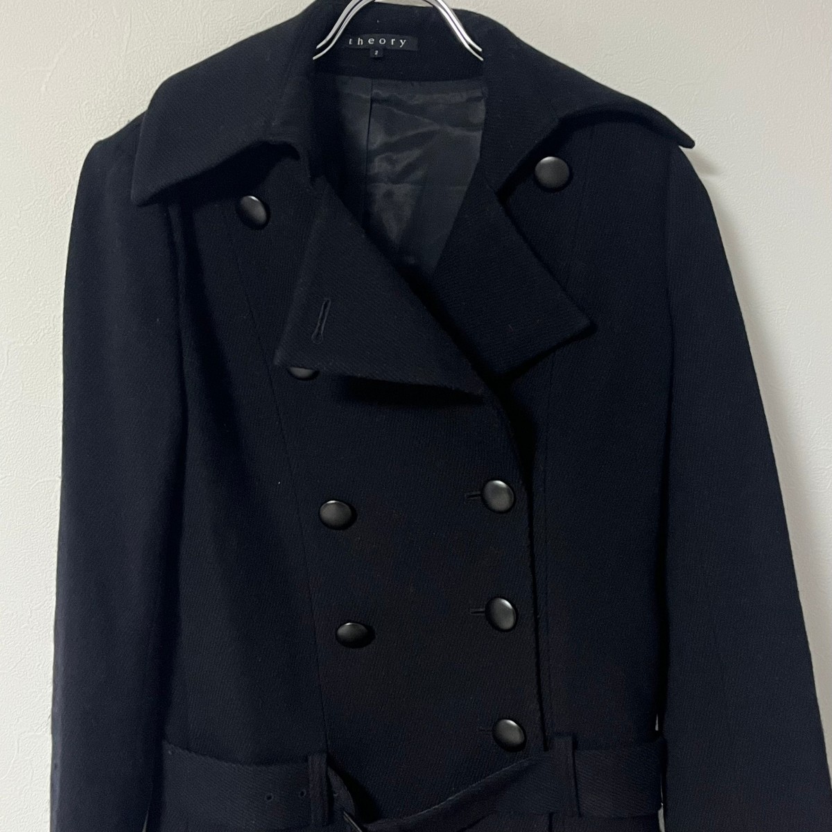 theory セオリー 毛混 Pコート ダブルボタン チェスターコート アウター レディース ブラック ロングコート サイズ2