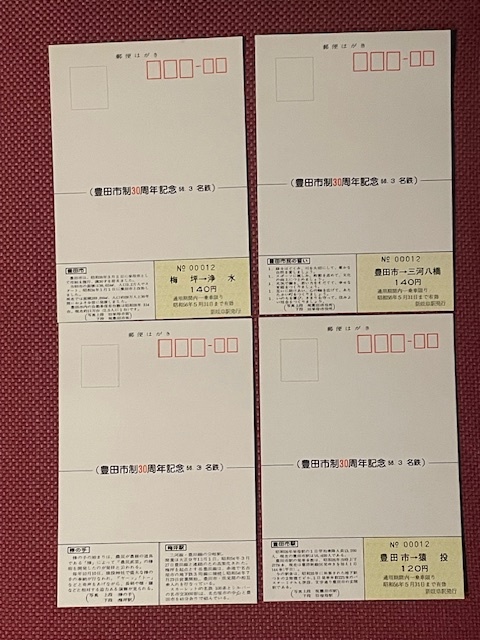 名鉄 豊田市制 30周年記念 はがき 4枚セット (管理番号3-21)