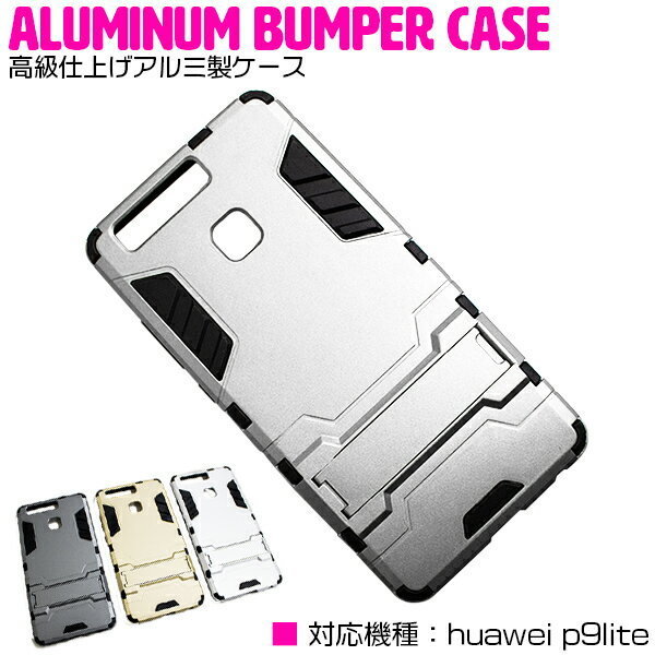 huawei p9liteケース huaweip9liteカバー スタンド付き シルバー/銀 【Android用 ファーウェイ ハードケース】