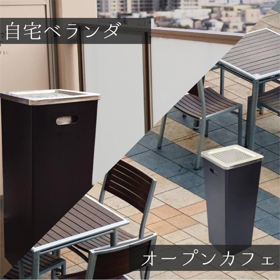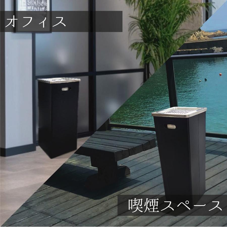 どんな場所でも配置しやすいおしゃれな黒色ベース。飲食店やオフィスなどの業務用スタンド灰皿としてや、屋外の公園の喫煙所、個人宅のベランダ用灰皿スタンドとして様々な場所で活躍します。