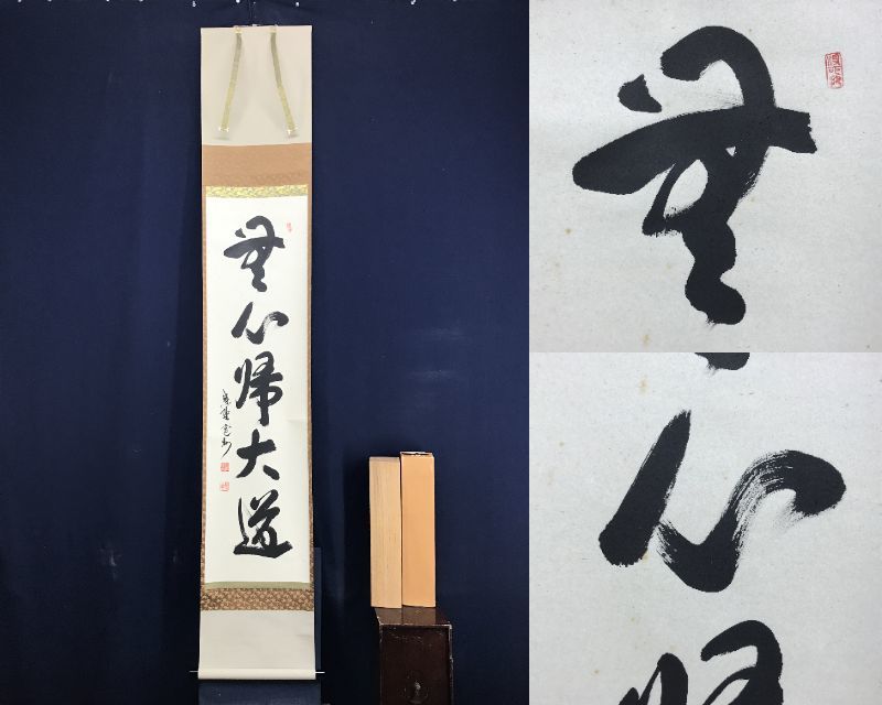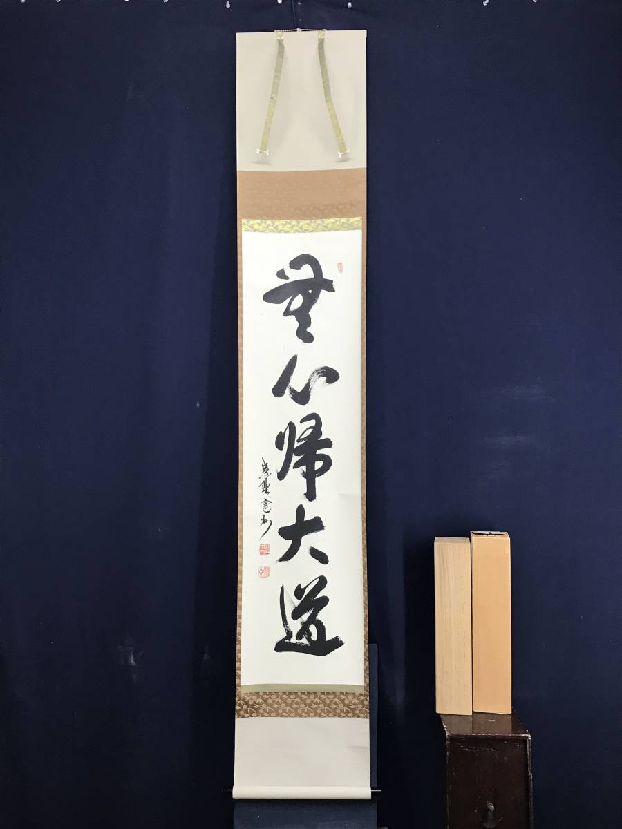 真作/紫野長谷川寛州/一行書/無心帰大道/茶道具/茶掛/禅語/掛軸☆宝船☆AE-351