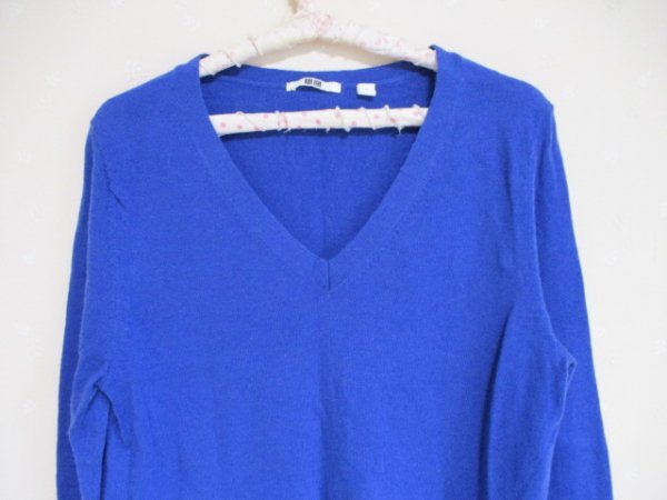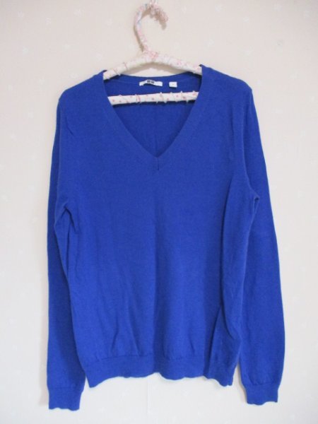 ★ ユニクロ ★ Vネック ウール セーター M ブルー(40206)レディース