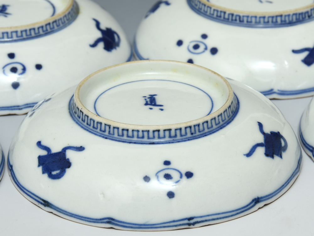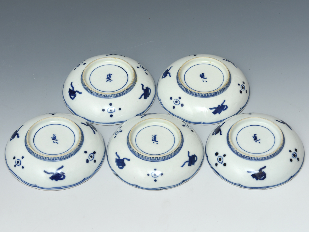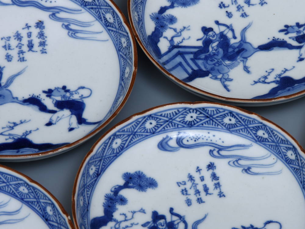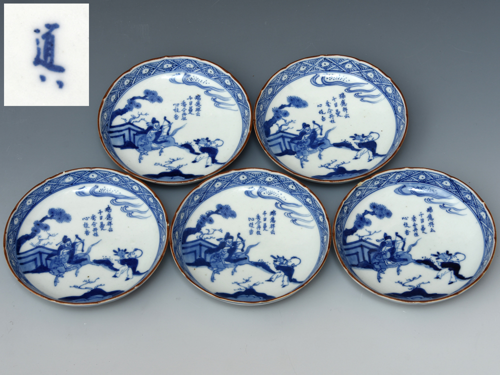 高橋道八(造)染付漢詩馬上人物画 小皿5枚セット 径12㎝茶道具 懐石道具 京焼 陶磁器 |