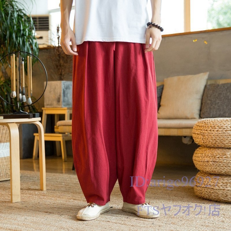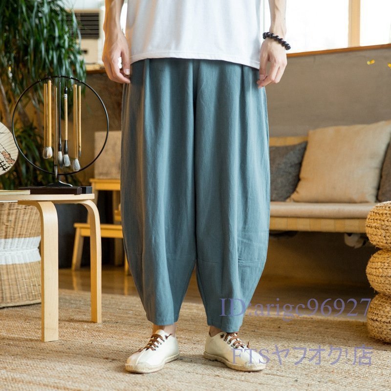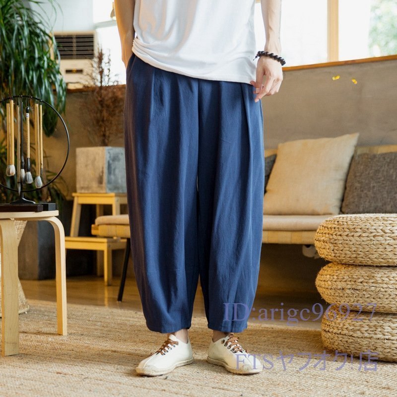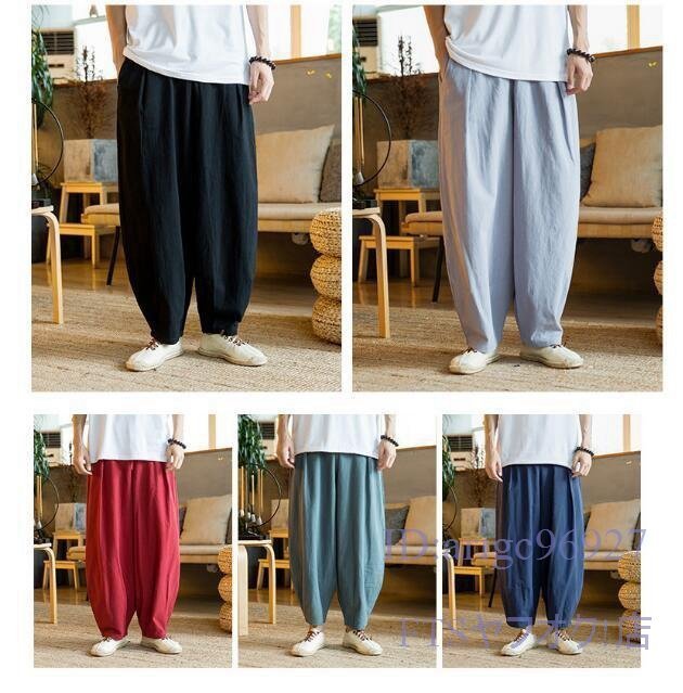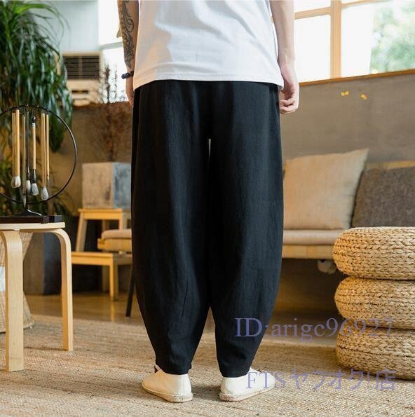 S913☆新品メンズ サルエルパンツ ワイドパンツ 春夏 カジュアル スウェットパンツ 麻パンツ 綿麻 ジョガーパンツ イージーパンツ 黑 M~5XL