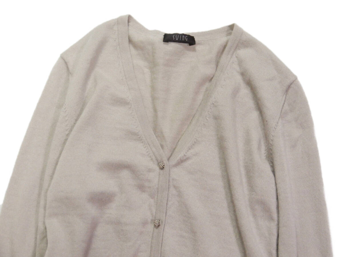スウィング カーディガン サイズ:40 お色:ライトグレージュ系 素材:カシミヤ100% 平置き実寸で 肩幅33 身幅40 着丈53 袖丈52㎝位です。 |