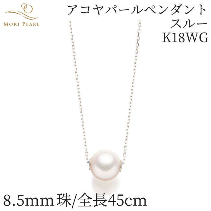 アコヤパールペンダント スルー 8.5mm K18WG アコヤ 真珠 卒業 入学式 結婚式 冠婚葬祭