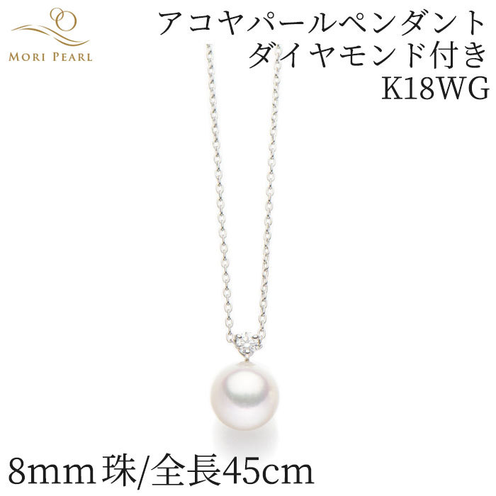 アコヤパールペンダント 8mm K18WG ダイヤモンド0.07ct アコヤ 真珠 卒業 入学式 結婚式 冠婚葬祭