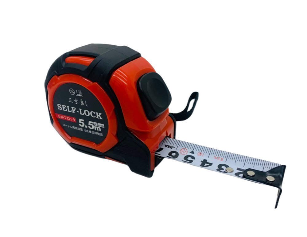 三方良し赤 1個 セルフロック メジャー 25mm 幅5.5m コンベックス セルフストップ 両面目盛 JIS1級規格 0点補正移動爪付 メジャー 巻尺
