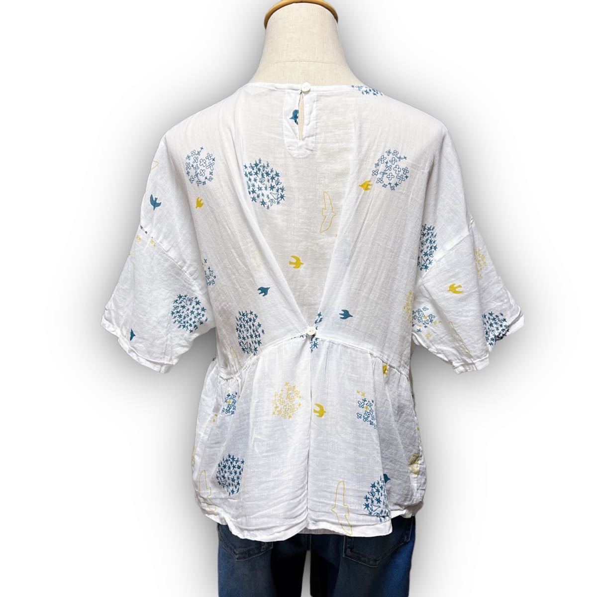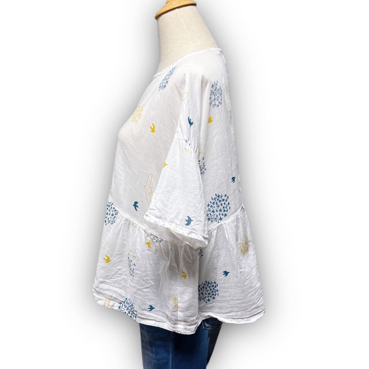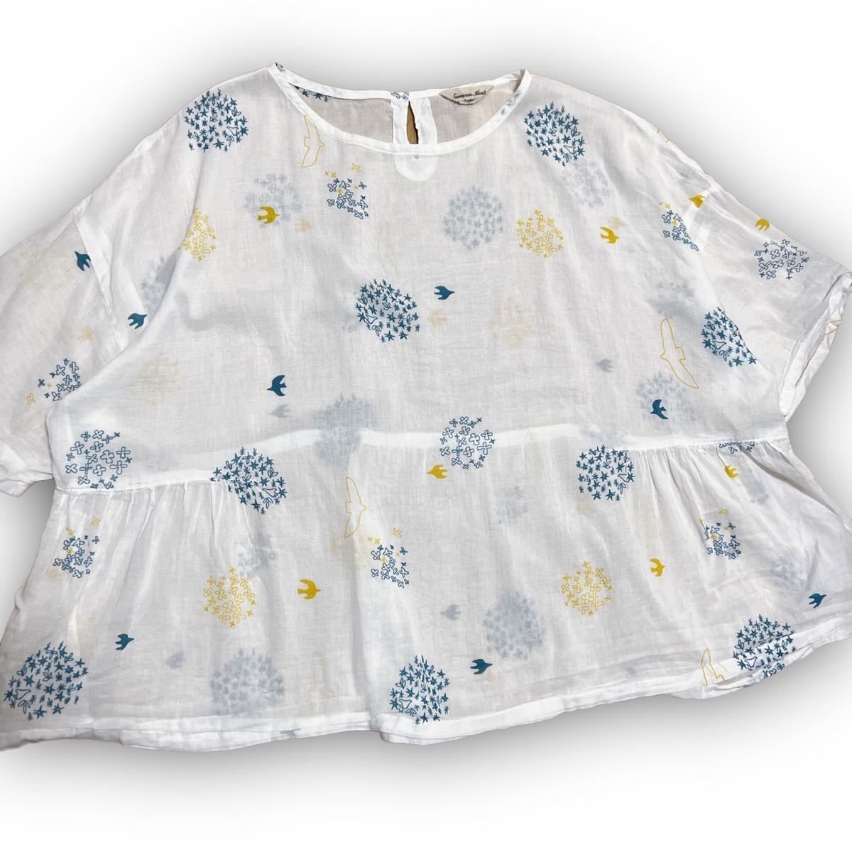 Y360★美品★Samansa Mos2 サマンサモスモス ボイルカモメ柄ブラウス 大人可愛い 透け感 定価5,292円 フリーサイズ ホワイト レディース