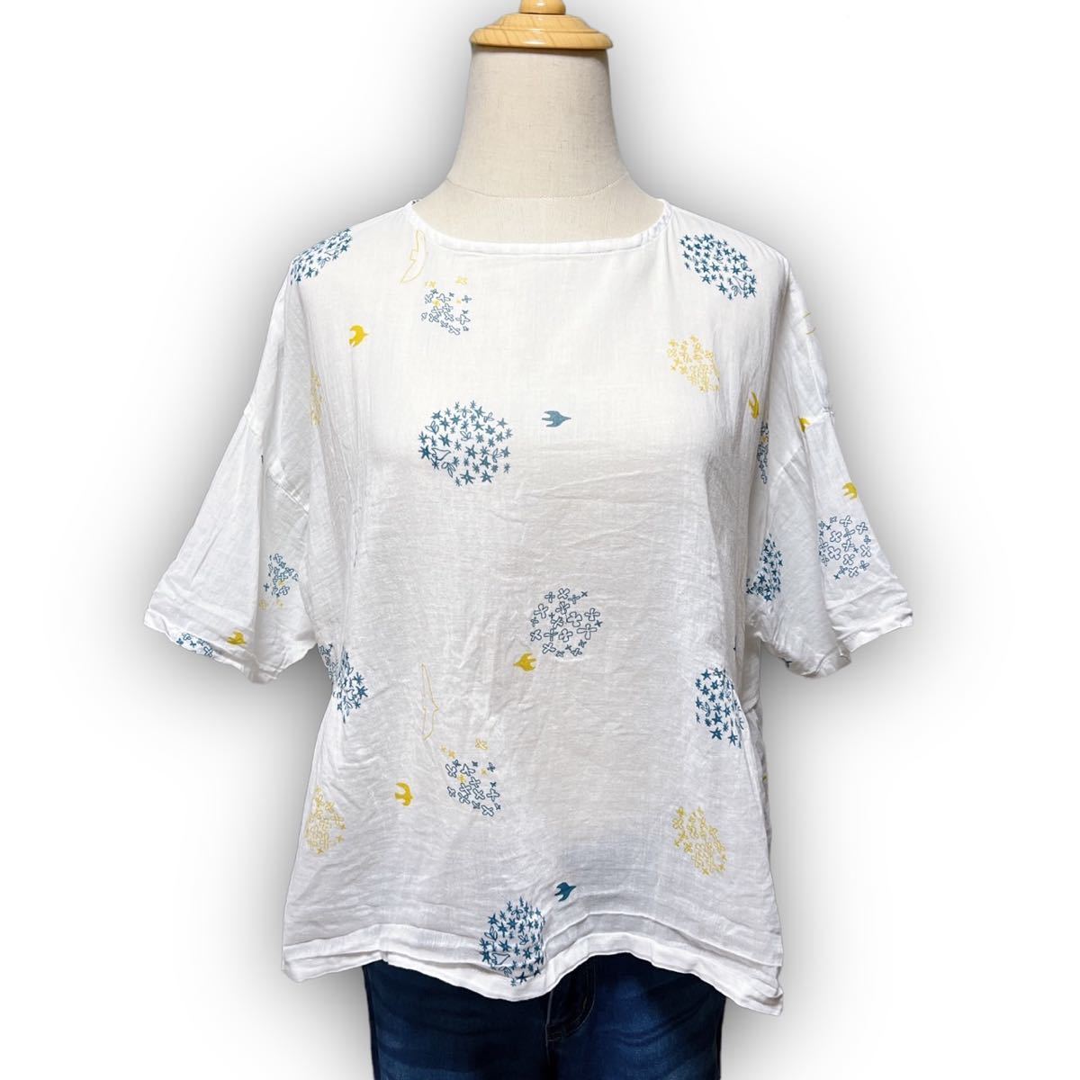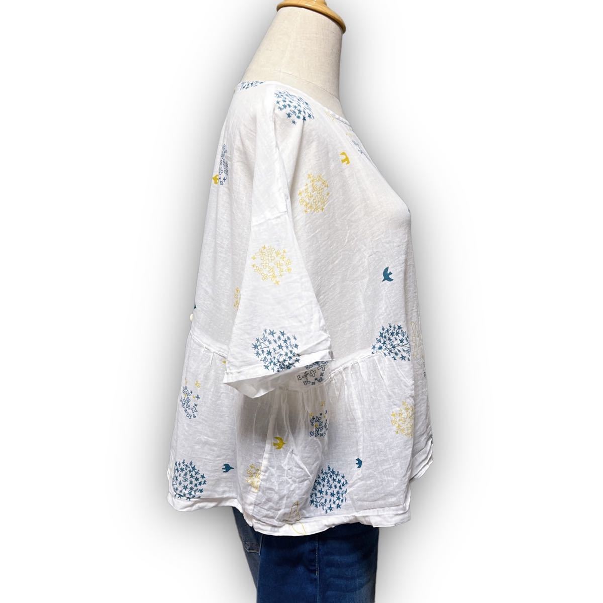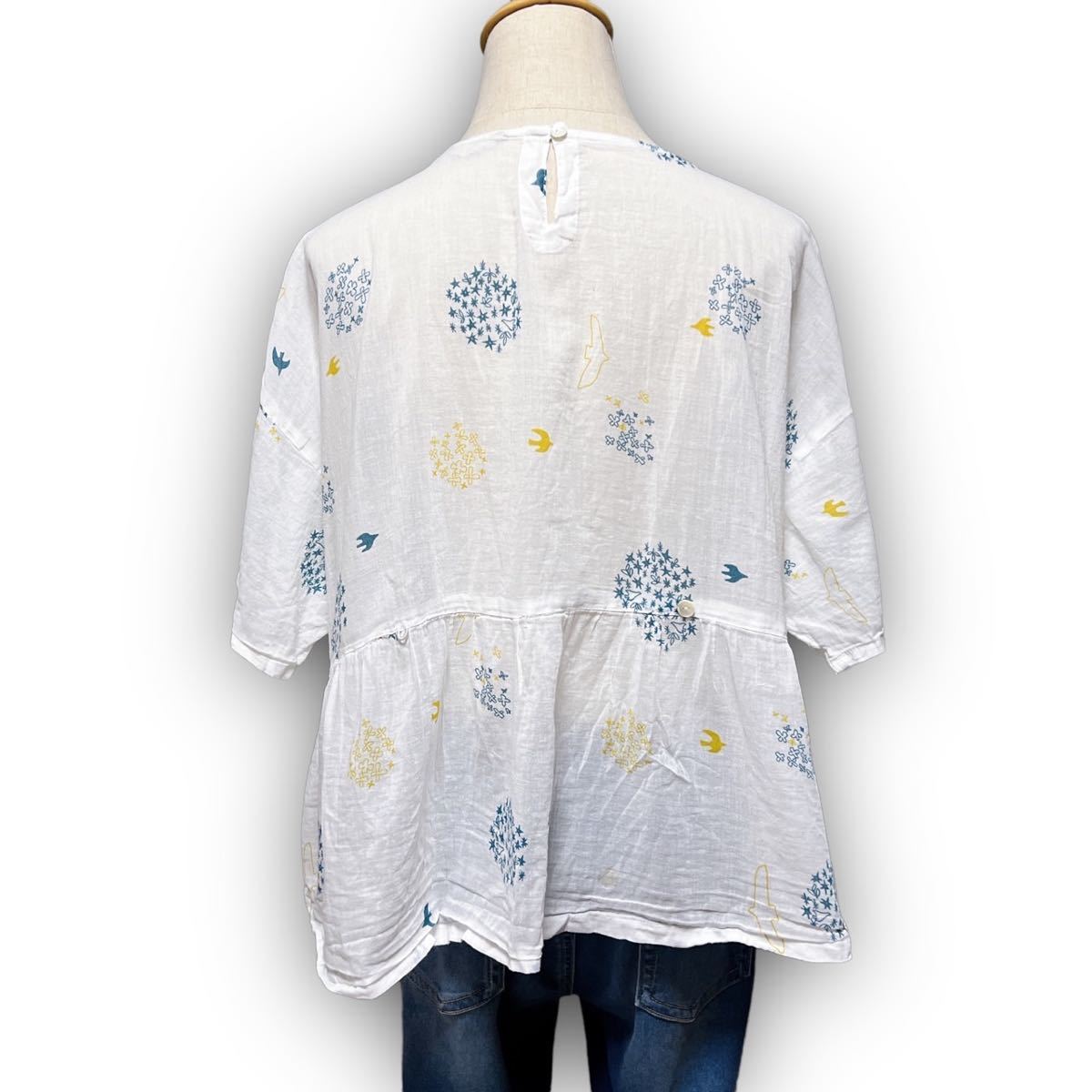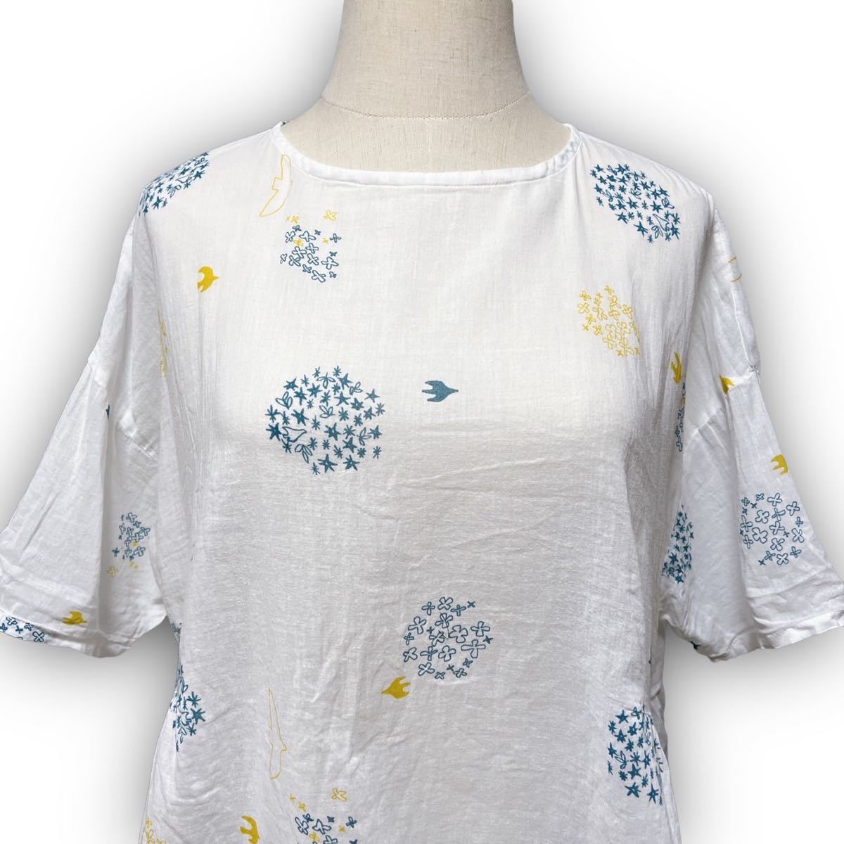 Y360★美品★Samansa Mos2 サマンサモスモス ボイルカモメ柄ブラウス 大人可愛い 透け感 定価5,292円 フリーサイズ ホワイト レディース