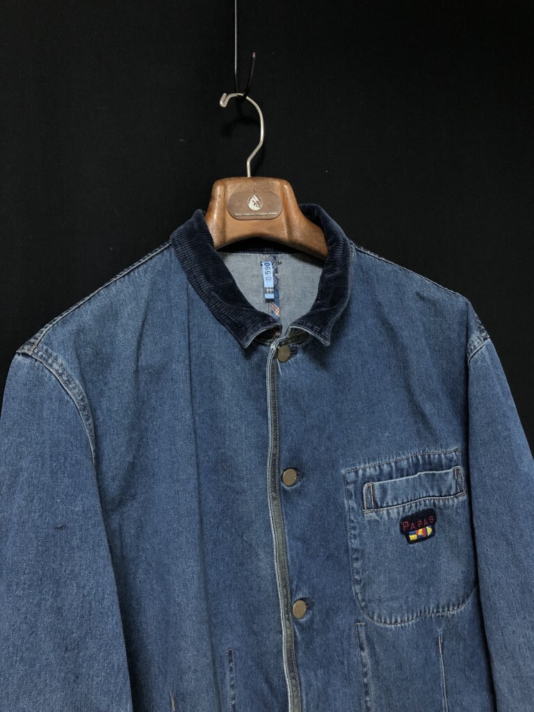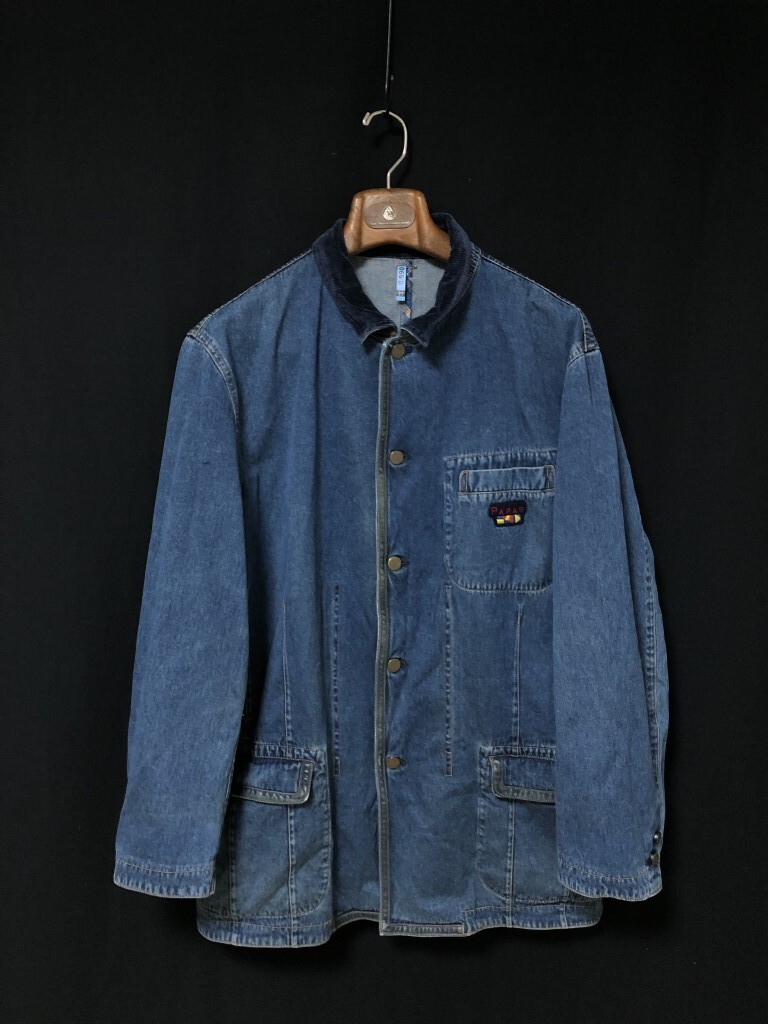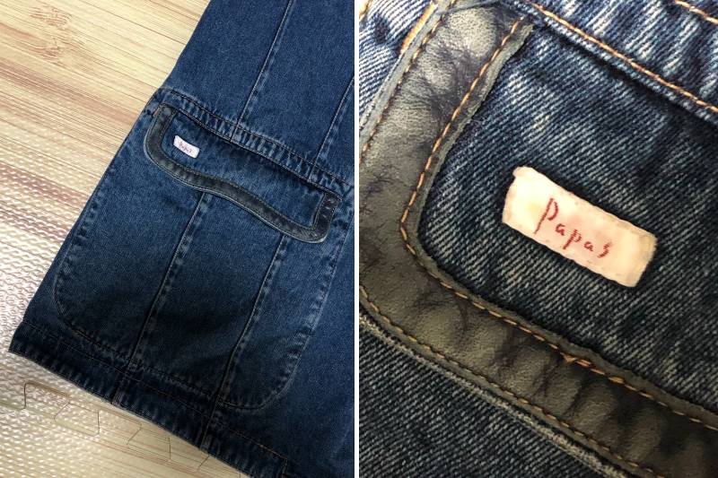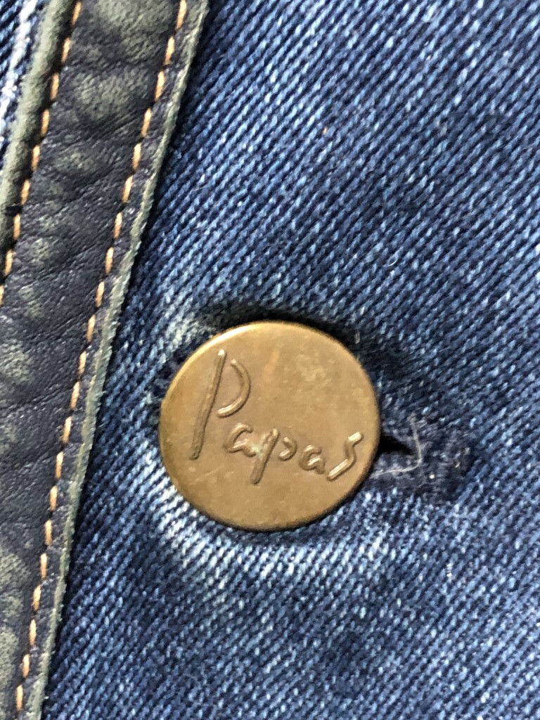 ◆Papas パパス デニム カバーオール M レザートリム インディゴ