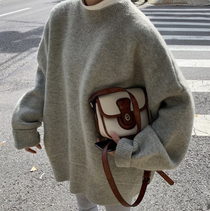 ボリューム感のあるヒップまですっぽり隠れるオーバーシルエットが人気のニットプルオーバー。