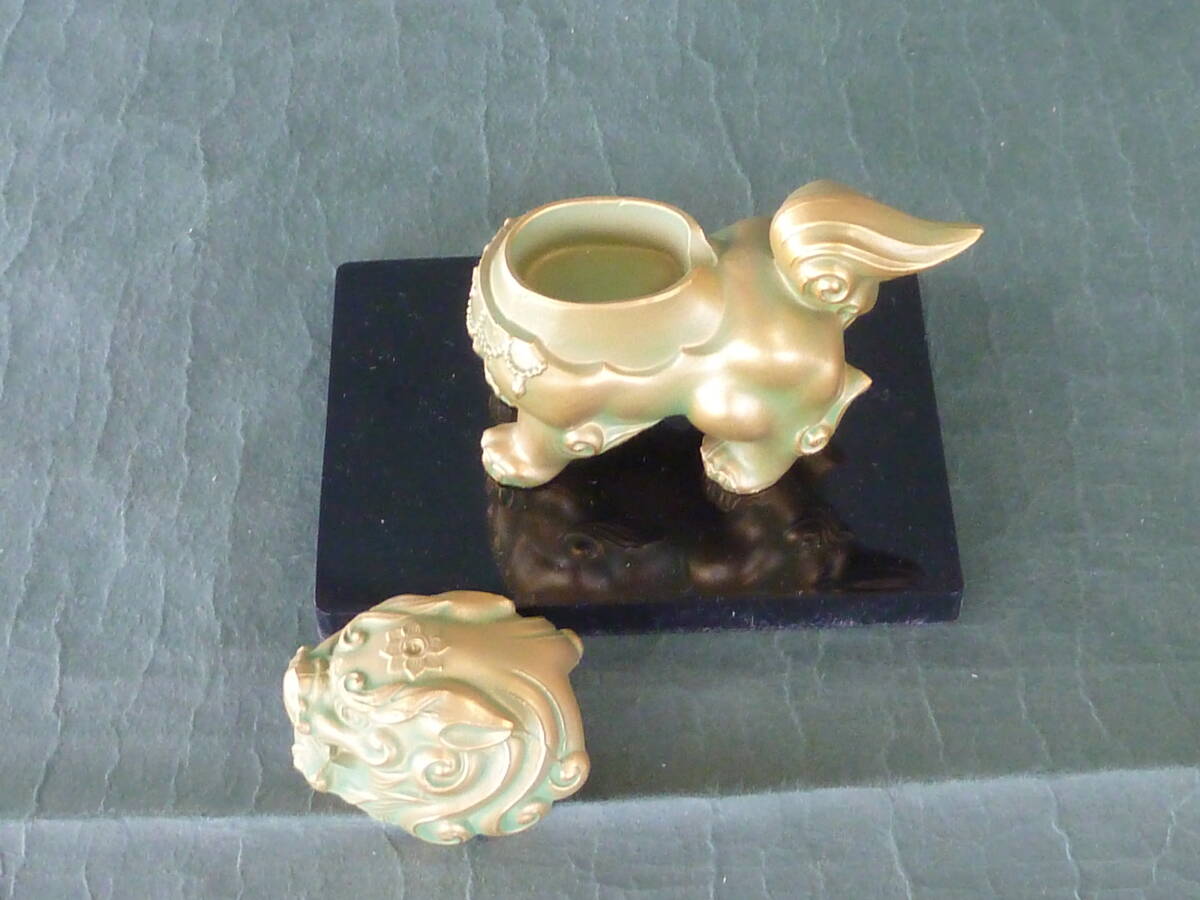 獅子香炉(小) 獅子の置物 横10cm奥行4.5cm高さ7cm 合金製 P台付 新品