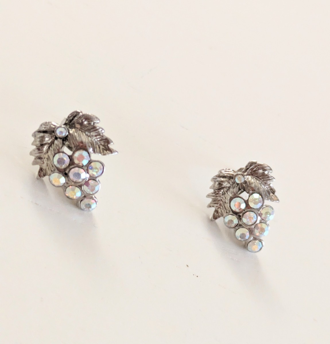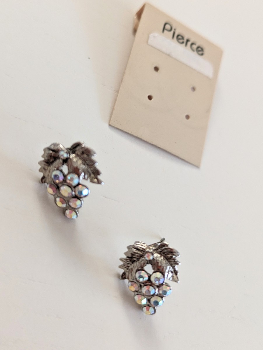 こちらは、新品未使用 葡萄 グレープ ラインストーン シルバーカラー スタッドピアス になります♪