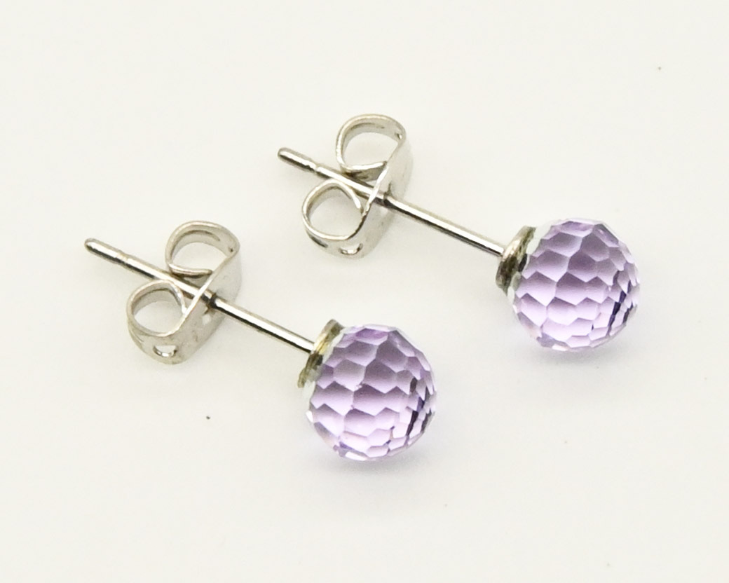 クリスタルのピアス 球形多面体 パープル | |||