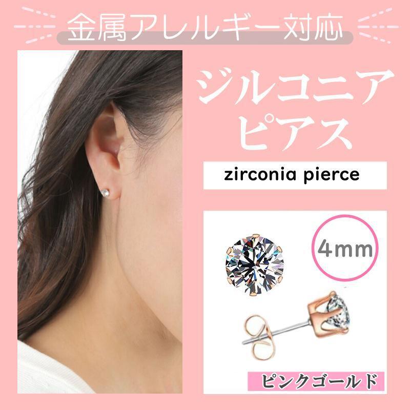 ピアス 金属アレルギー対応 サージカルステンレス シンプル ジュエル 4mm ラウンド 1ペア 両耳用 セカンドピアス ステンレスピアス メンズ ファーストピアス 医療用 キュービックジルコニア 送料無料 ジルコニアピアス ローズゴールド ピンク