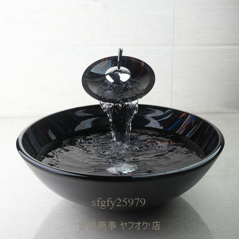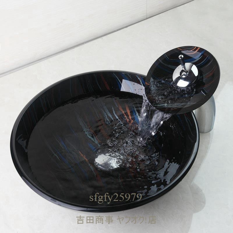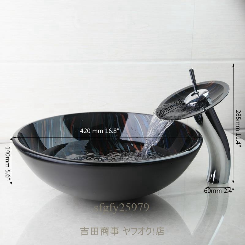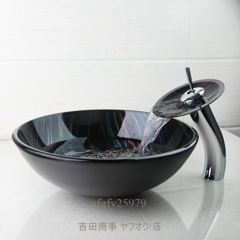 A7899☆KEMAIDI強化ガラス 容器蛇口 ボウル 滝口 ラウンドシンク 浴室 洗面台 ホット&コールドウォーター ミキサータップカウンタートップ
