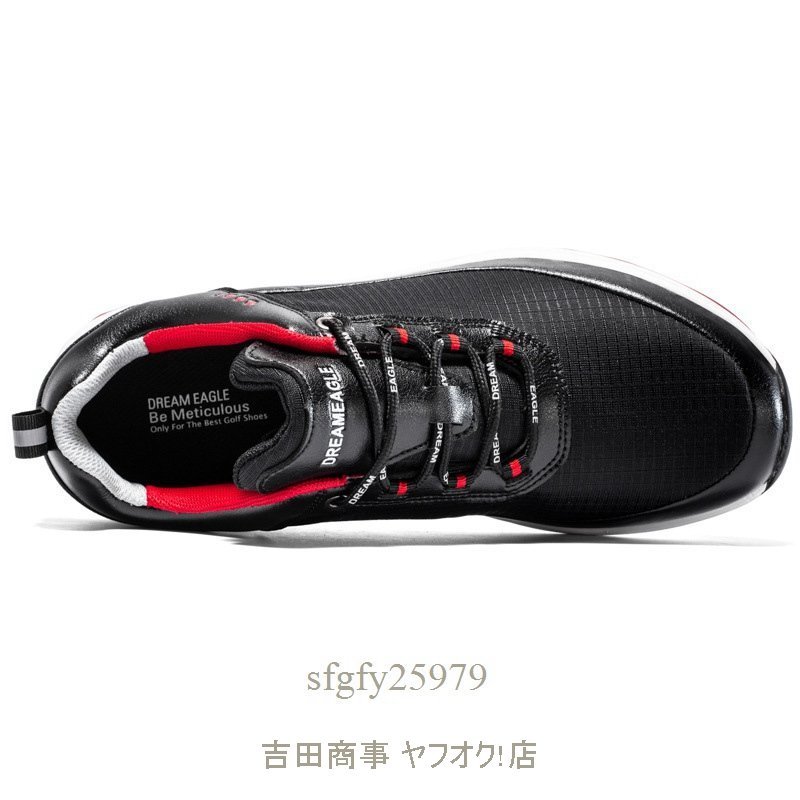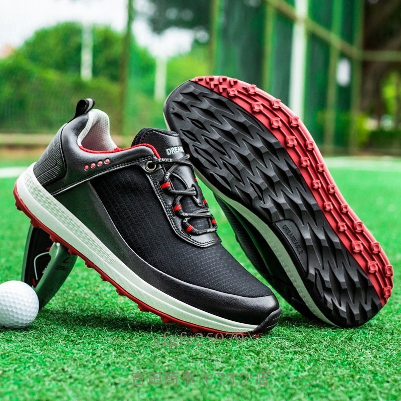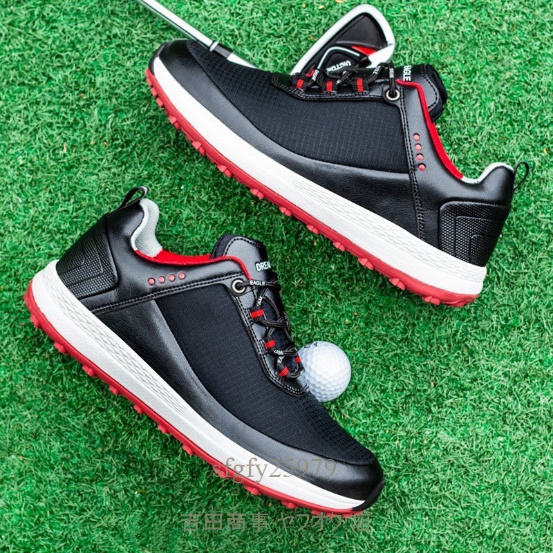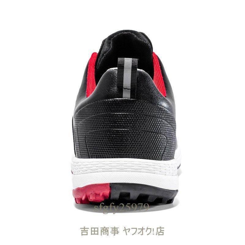 A6939新品ゴルフシューズ スポーツ メンズ通気性防水 スニーカー運動靴滑り止め耐摩耗性 ウォーキング 快適幅広 弾力性 フィット感 黒赤