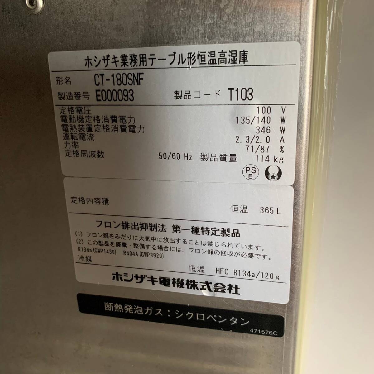 【HOSHIZAKI】 ホシザキ 台下恒温高湿庫 テーブル型恒温高湿庫 単相100V CT-180SNF-ML 2015年製