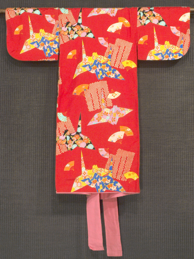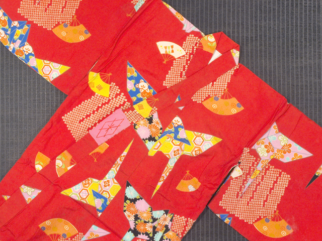 【子ども】扇に折鶴と源氏香文 羽二重 一つ身 丈83 TANB01008 風楽 |