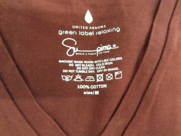 green label relaxing UNITED ARROWS ユナイテッドアローズ メンズ Vネック 無地 半袖Tシャツ M エンジ色 です。